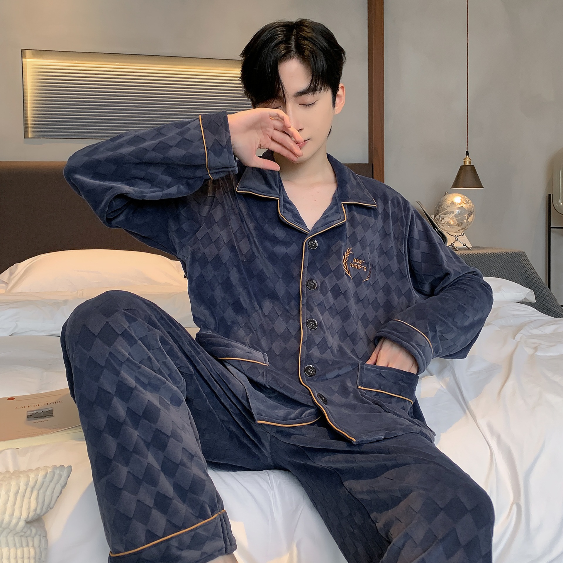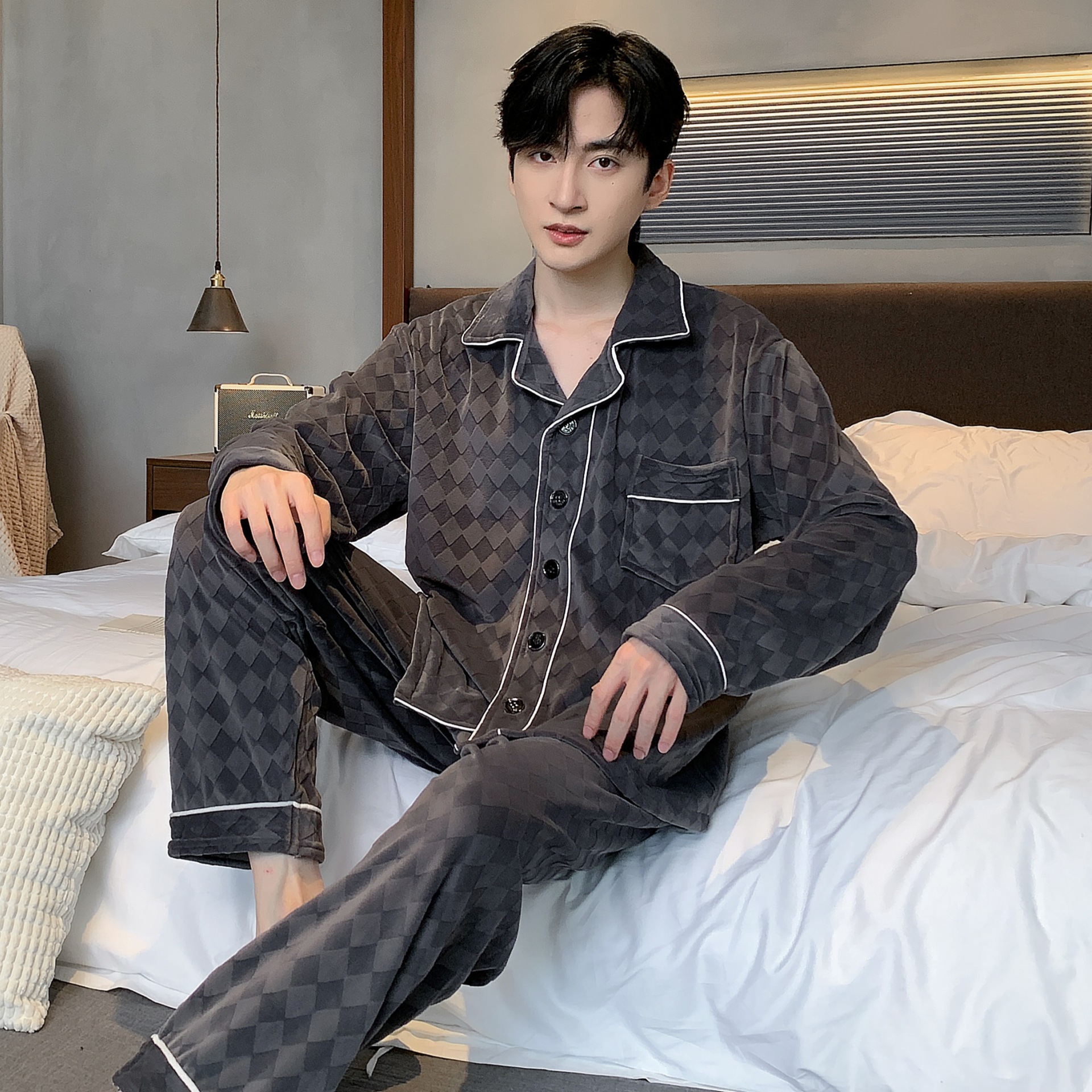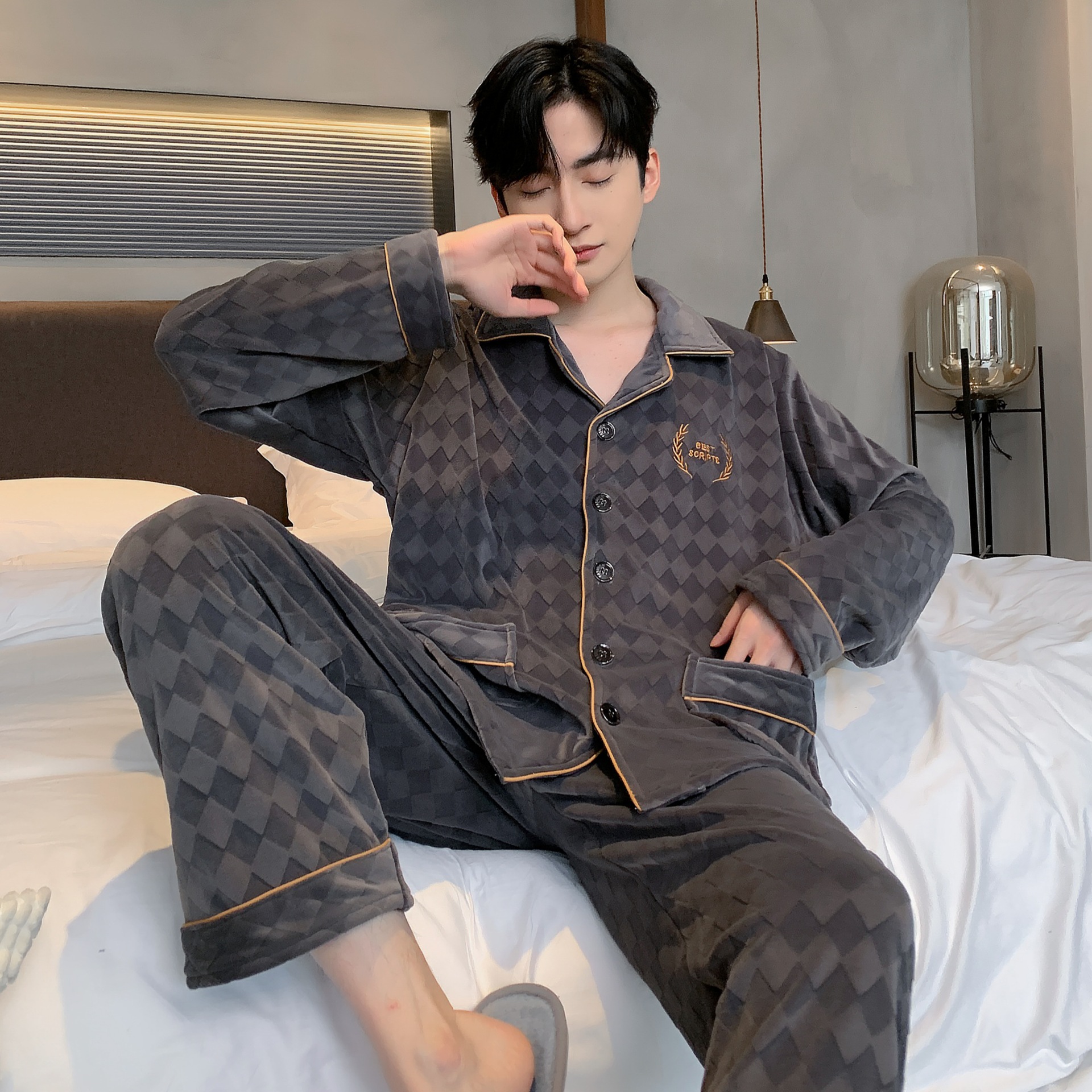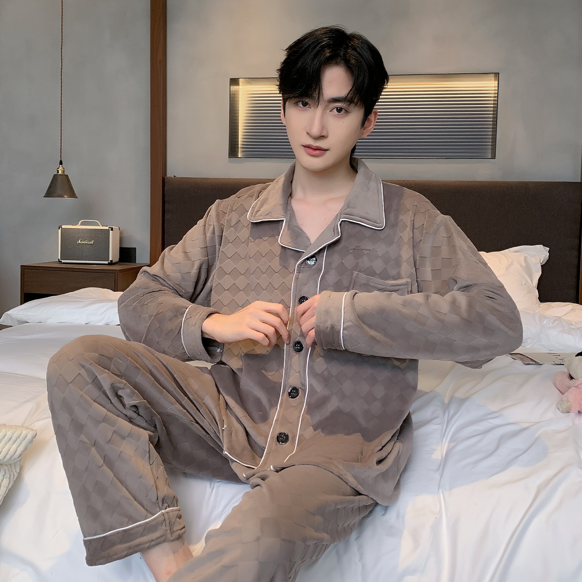 Осенние и зимние пары пижамы женские новые плюшевые островные бархатные теплые домашние костюмы сладкие и могут носить на улице мужчины