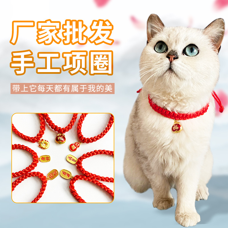 Главная страница > Кошачий воротник ручной работы на шее висит на шее Шея Мир Красная веревка Колоколье Ожерелье с котом Ювелирные изделия Товары для животных
