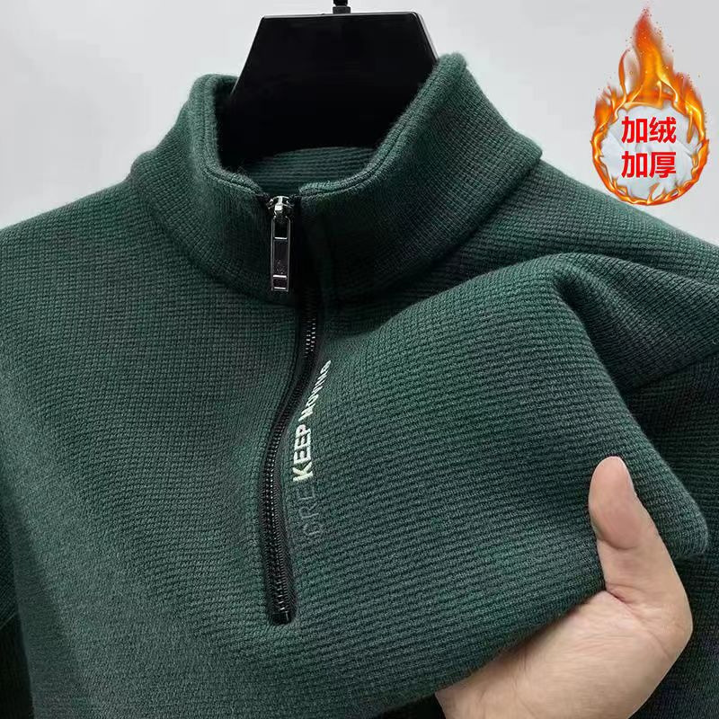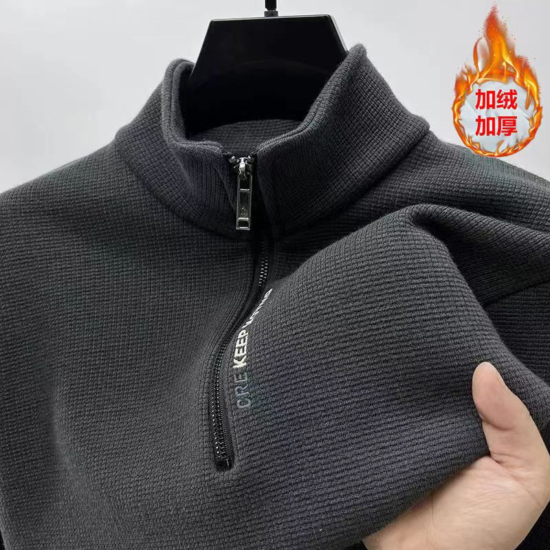 Главная страница > Трансграничная полузастежка-молния с плюшевой толстый свитер мужская зимняя теплая повседневная футболка с длинным рукавом и воротником