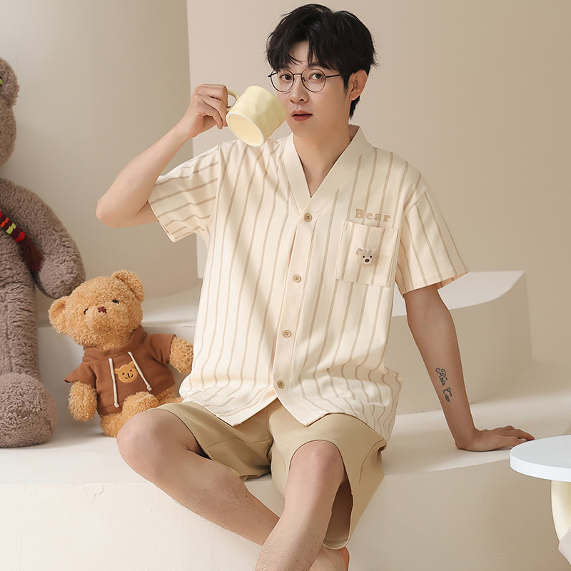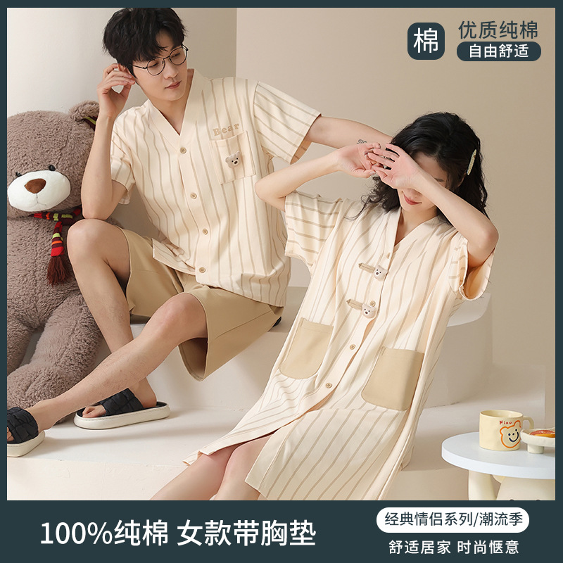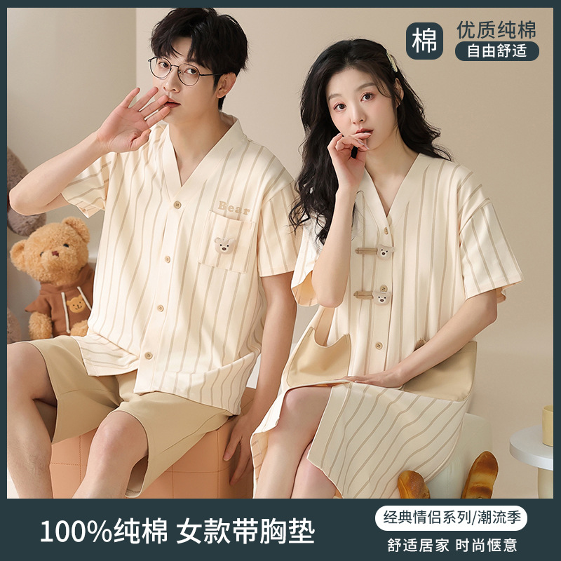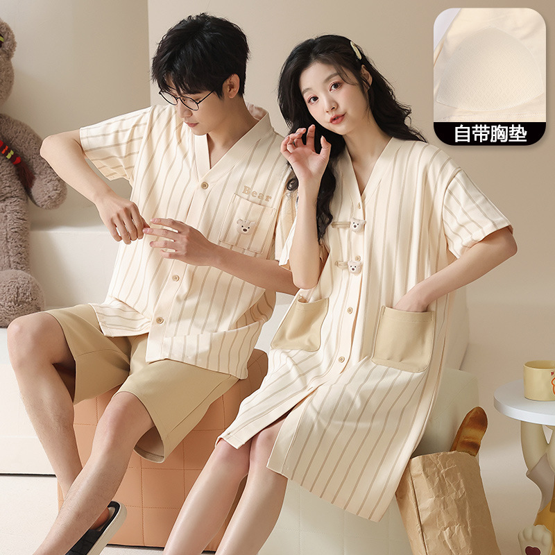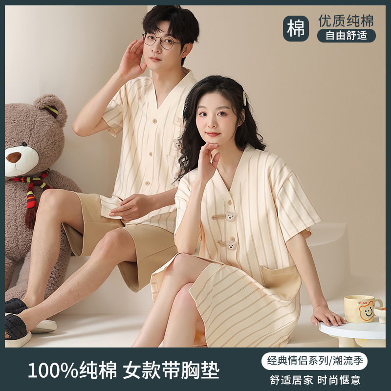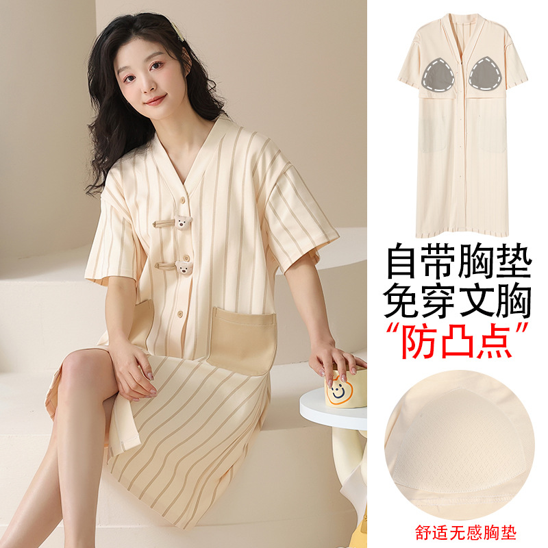 Главная страница > [Хлопок] Летняя пара пижамы с короткими рукавами и нагрудными подушками
