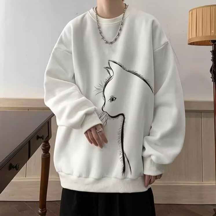 Главная страница > Толстовка мужской 2024 новый весенний и осенний круглый вырез без шапки прилив американский повседневный свободный рукав пуловер с длинным рукавом