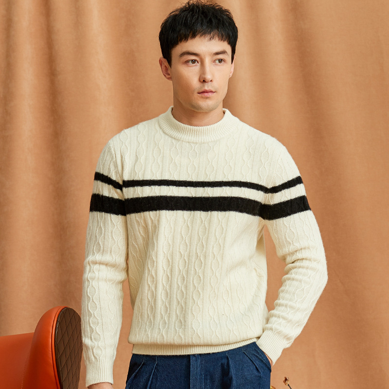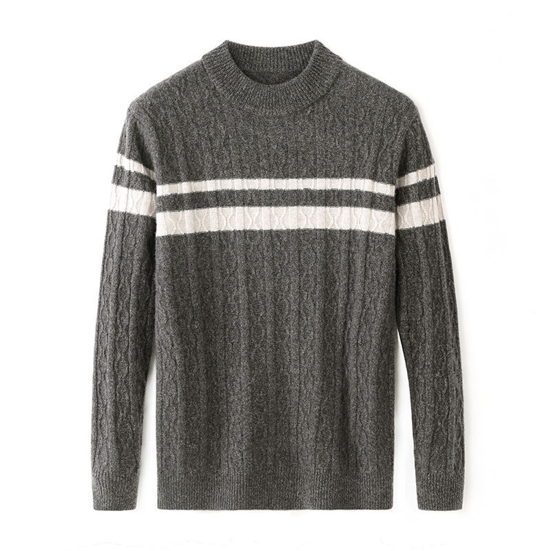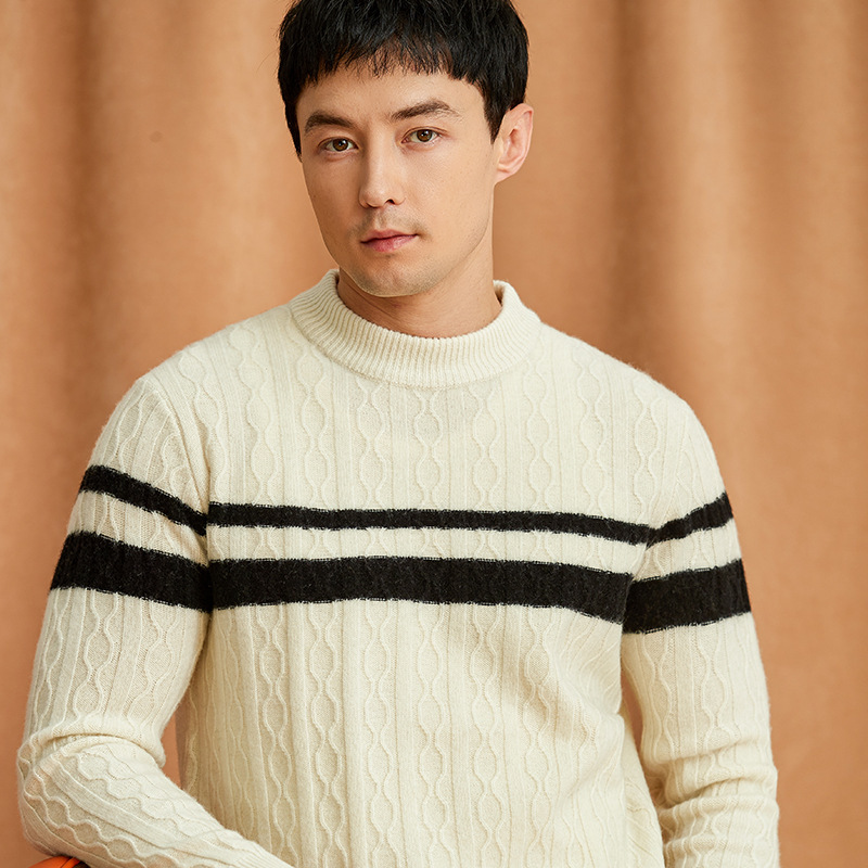 Главная страница > Осень и зима мужские 7 игл утолщенные полужидкий воротник простой модный 100 чистый шерстяной свитер жаккардовый свитер в полоску