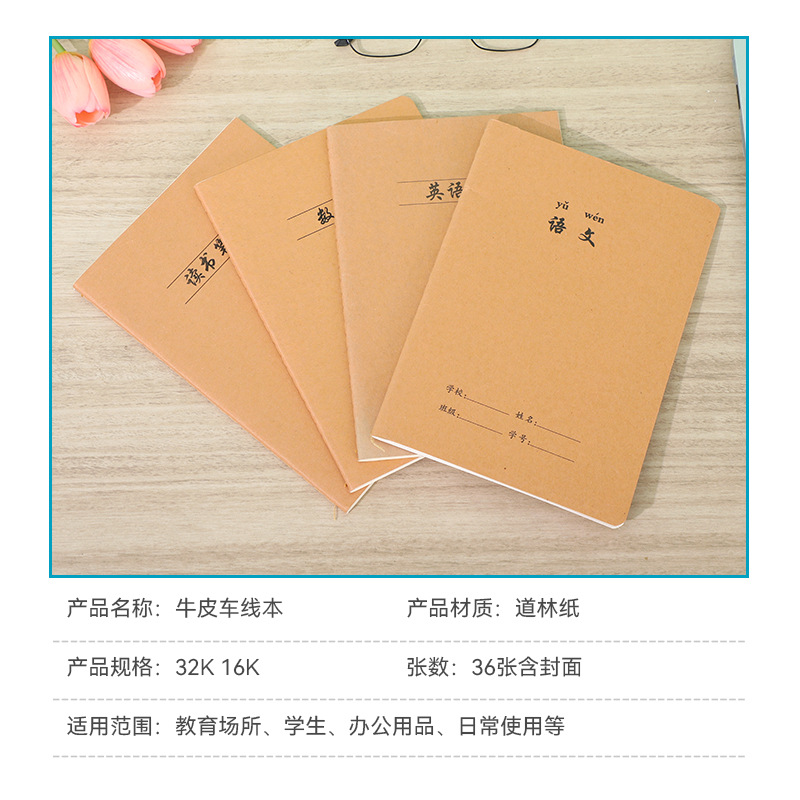 Книга для упражнений B5 с воловьей кожей, 36 листов, включая обложку