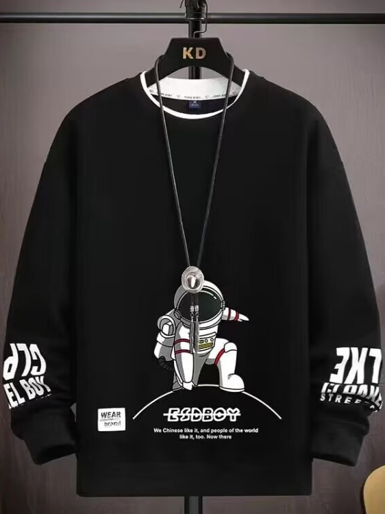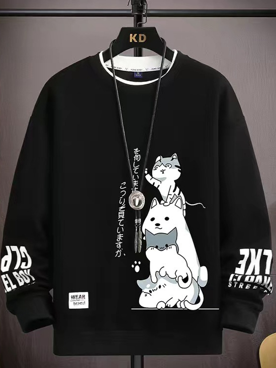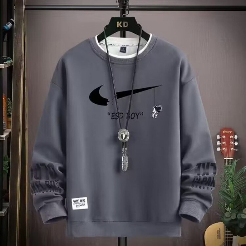 Главная страница > 2024 весенне-осенний свитер с круглым вырезом, мужской свободный свитер в гонконгском стиле, модная поддельная двухсекционная футболка для подростков, повседневная футболка с длинными рукавами, красивая