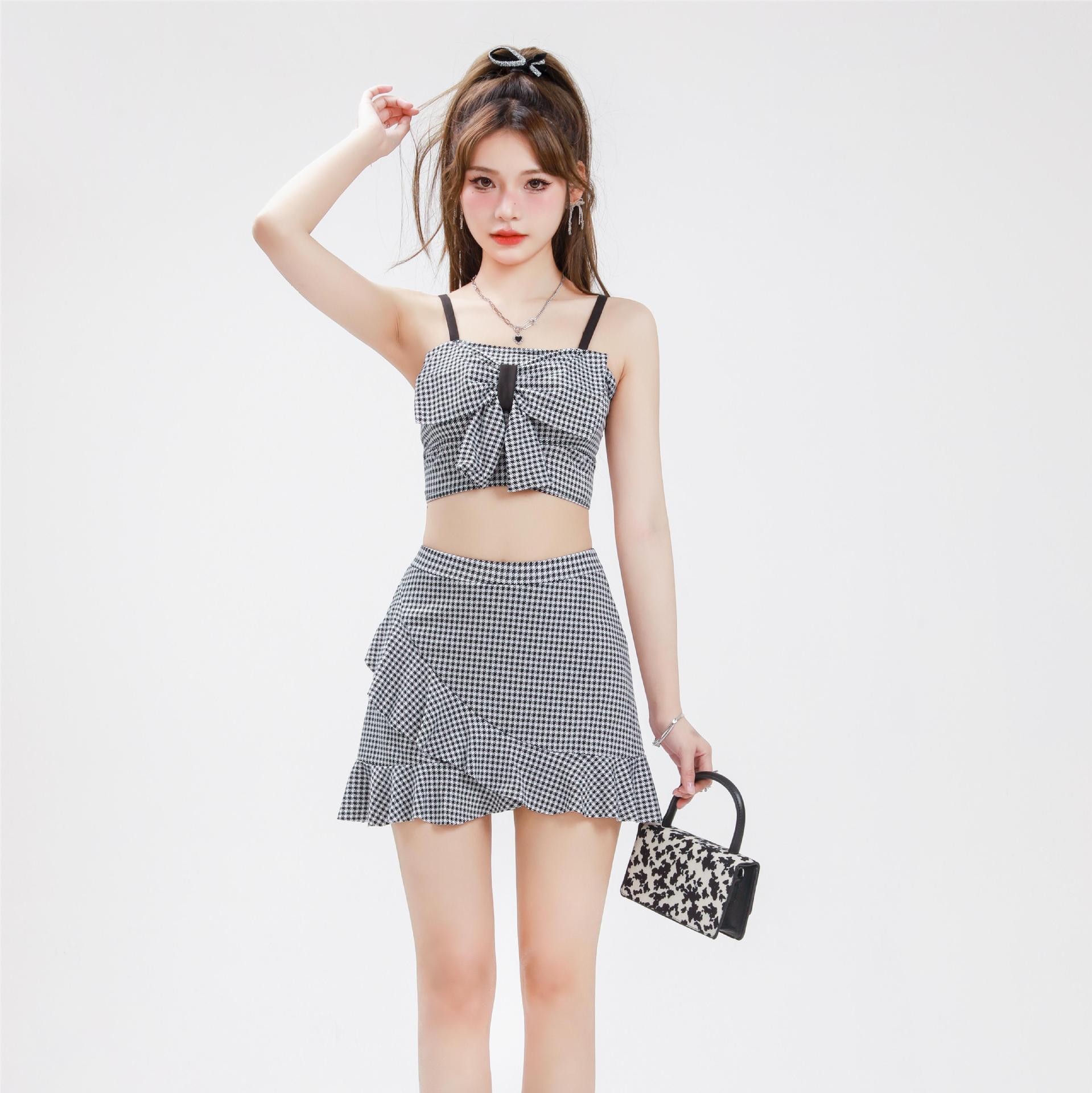 Новый купальник, Женский Pure Desire, сексуальный маленький грудь, горячая весна, консервативное цельное платье, покрывающий живот, комплект из двух предметов