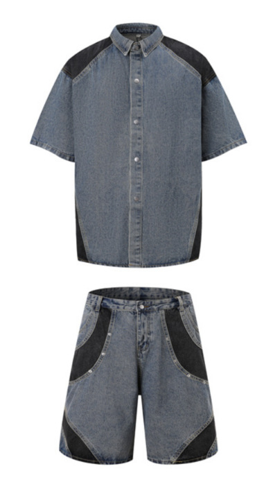 Главная страница > Мужской джинсовый костюм в стиле ретро с эффектом потертости, свободный повседневный трендовый костюм из денима от известного бренда
