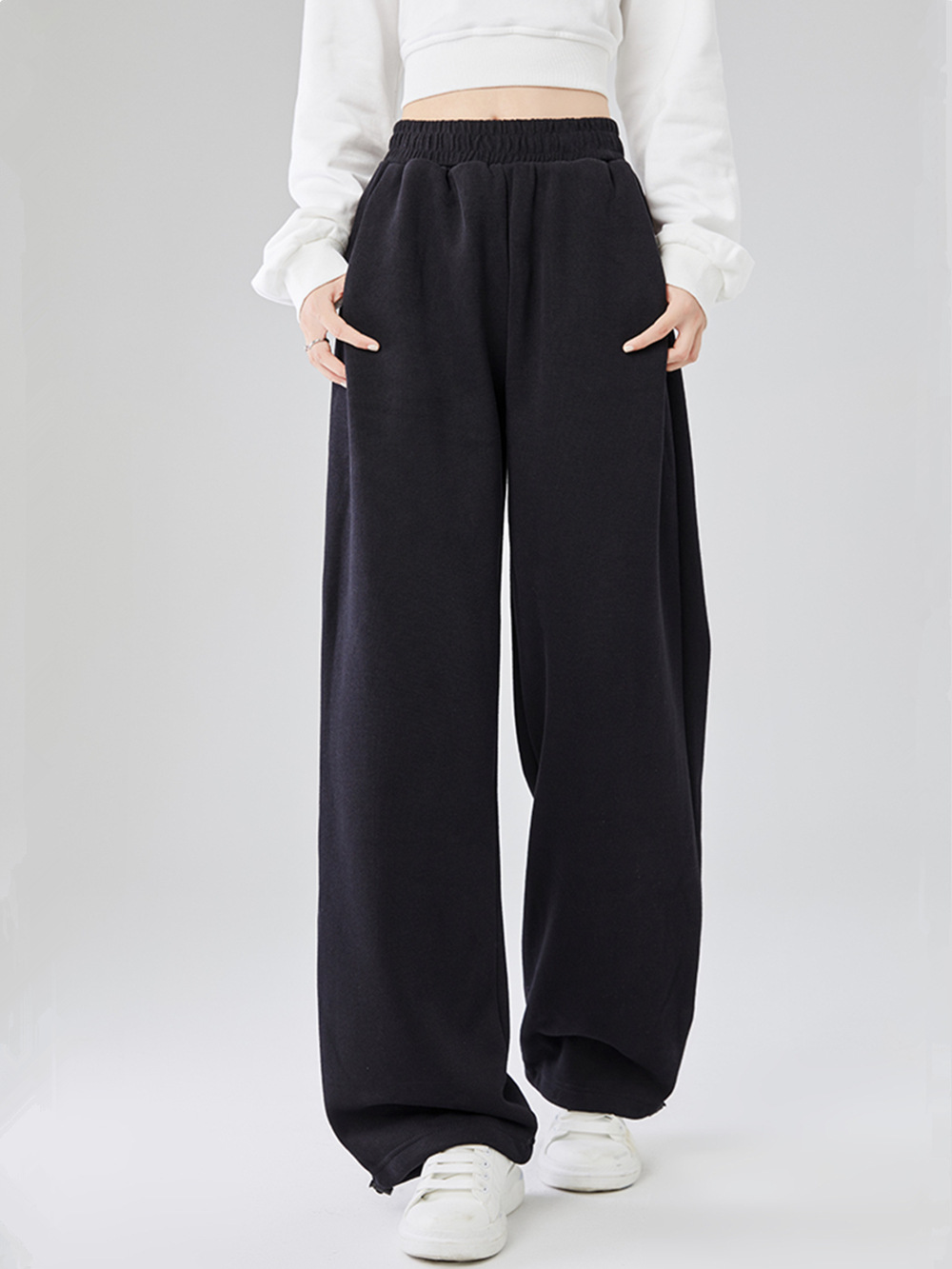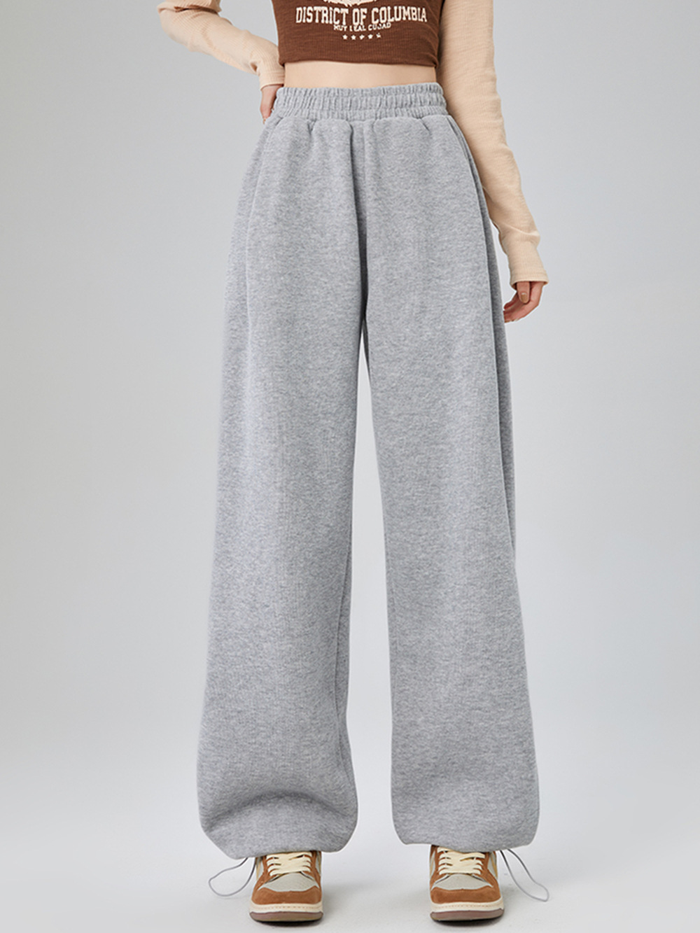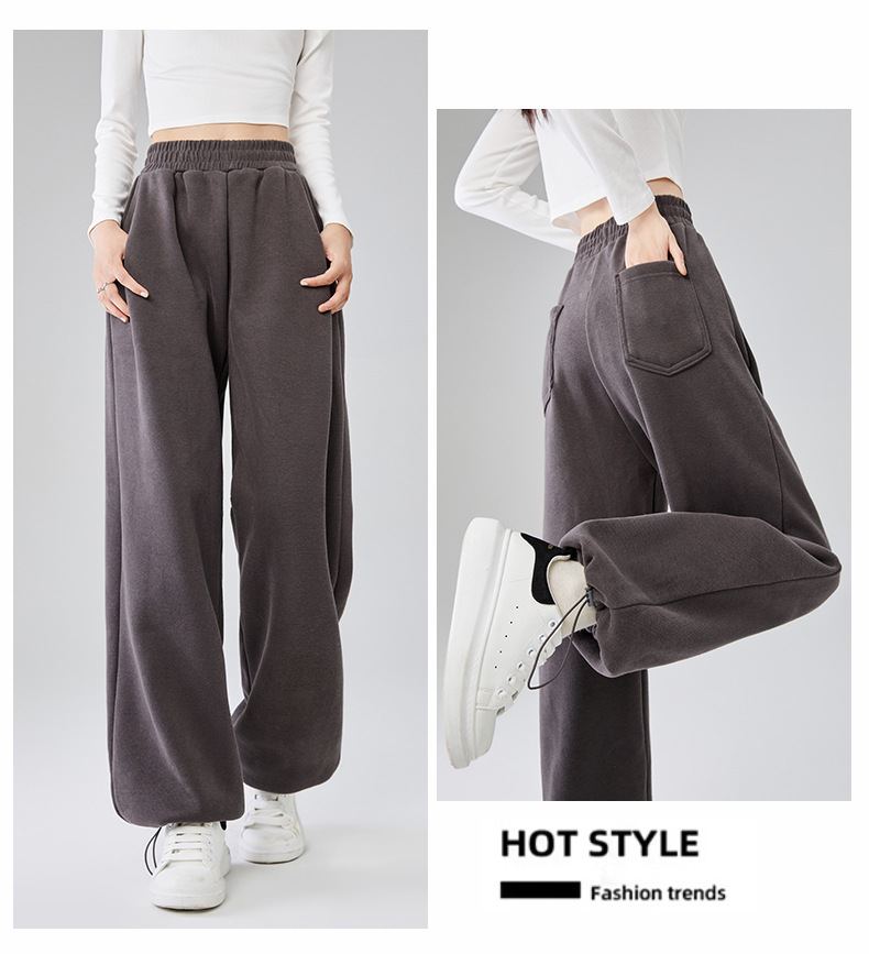 Главная страница > Американские прямые спортивные брюки женские осенью и зимой бархатные свободные с высокой талией, широкие ноги, ступни, щупики, повседневные брюки-брюки большого размера
