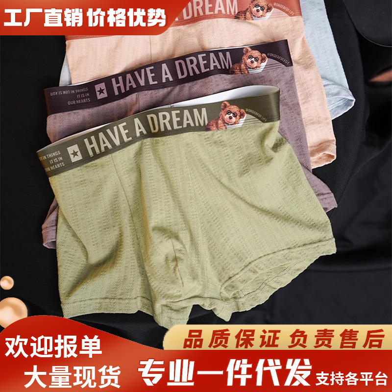 Главная страница > Мужские трусы-бокеры из чистого хлопкового жаккарда, средней посадки, антибактериальные, дышащие, модные, с принтом медведя.