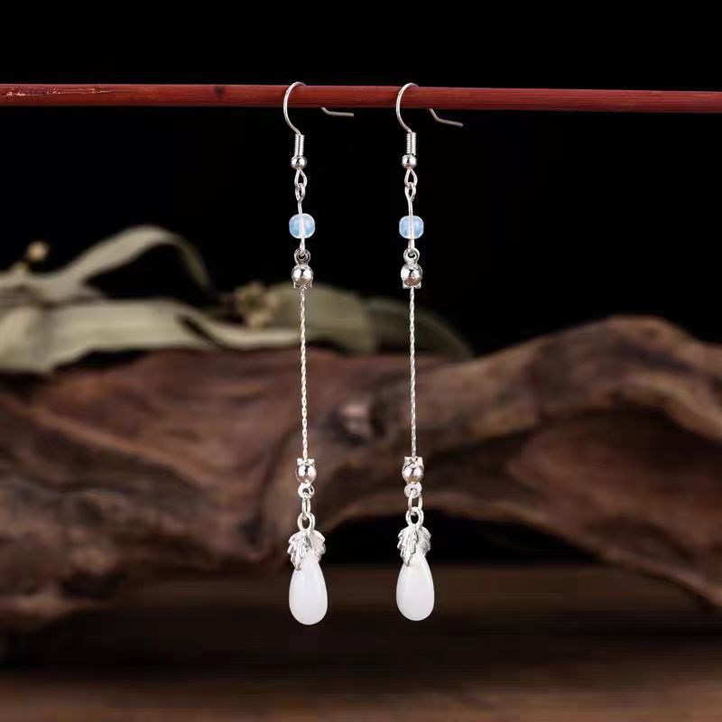 Древний стиль свежий и простой глазурованный капли воды длинные серьги супер сказочные и красивые 2024 новые ушные крючки классические ханфу серьги