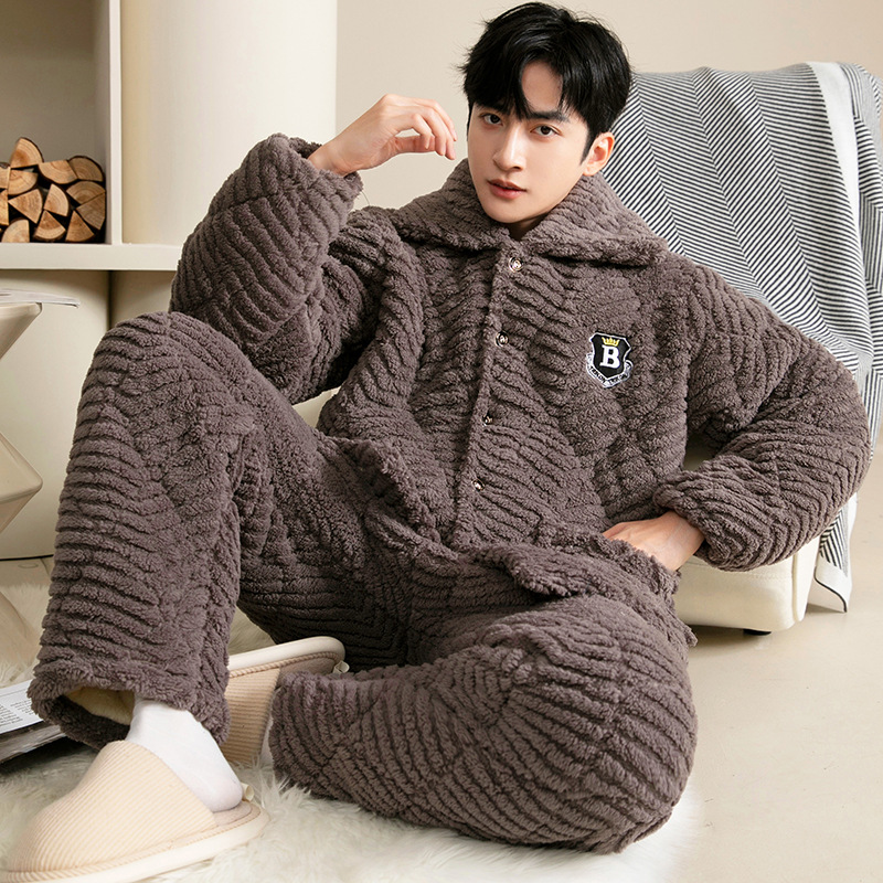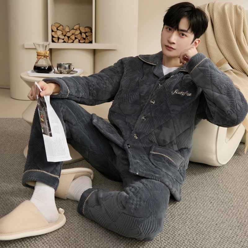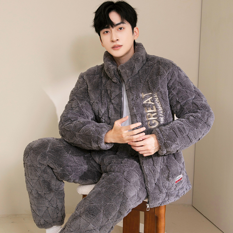 Пижама для мужчин Три слоя утолщения кораллового бархата зимой