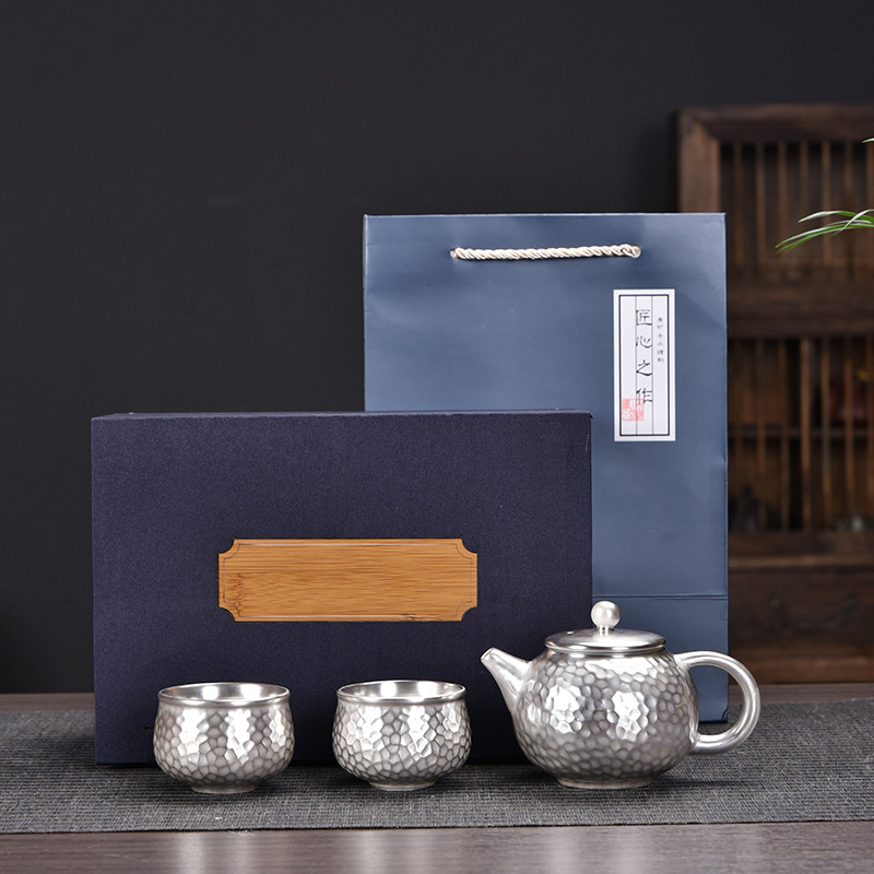 Серебряный чайный сервиз, чайник из стерлингового серебра, одна кастрюля, две чашки, портативный дорожный чайник с молотком, чашка для чая, подарочная коробка, чайный подарок