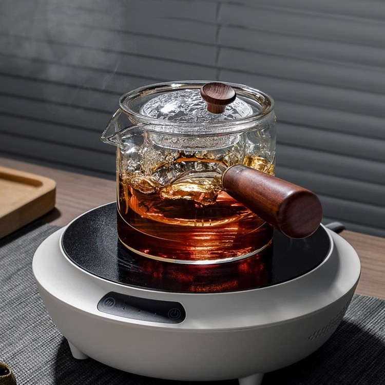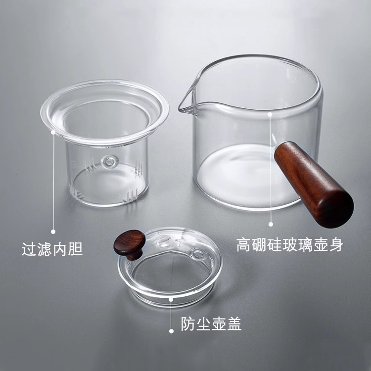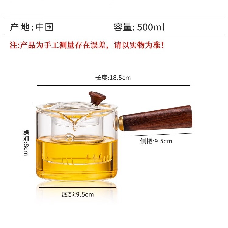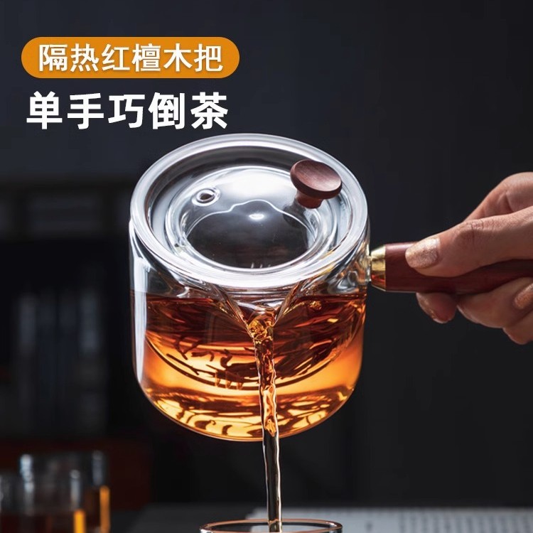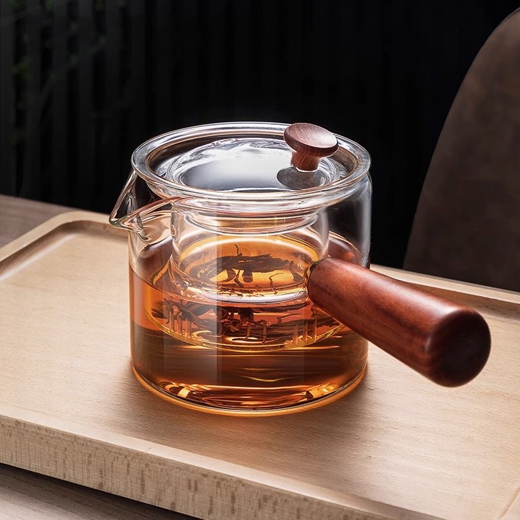 Стеклянный горшок в японском стиле с боковой ручкой Кипящий чайник с деревянной ручкой Чайный набор Кунг-фу Утолщенный чайник Цветочный чайник Интуитивный чайник