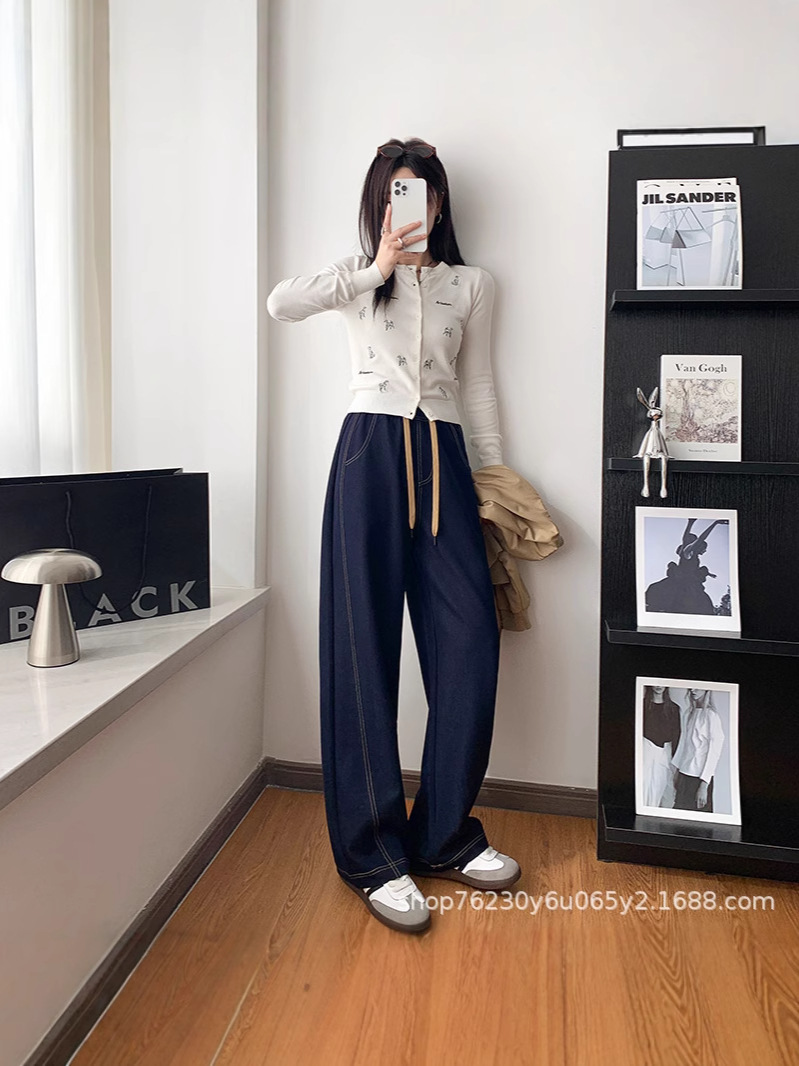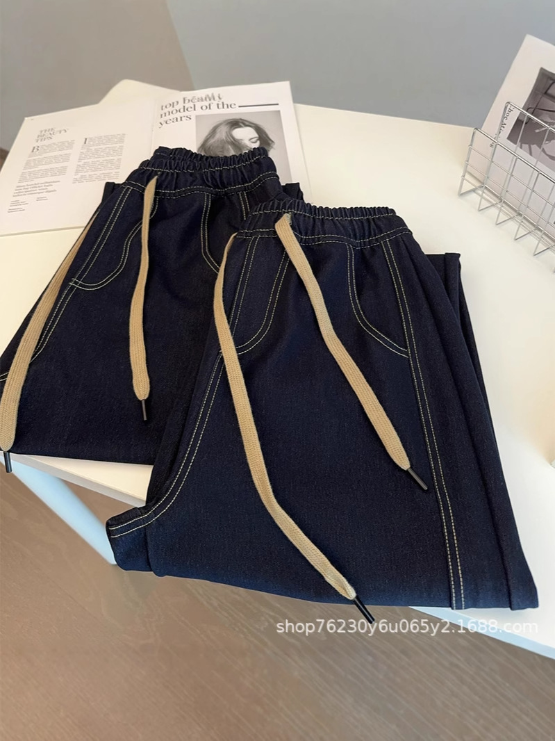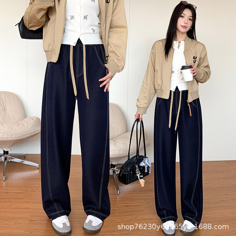 Главная страница > Оригинальные цветные джинсовые синие прямые свободные джинсы для женщин, новые летние утягивающие широкие длинные брюки с высокой талией