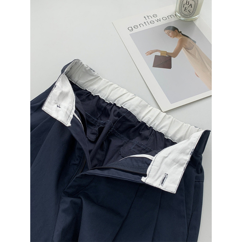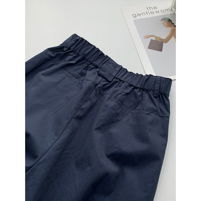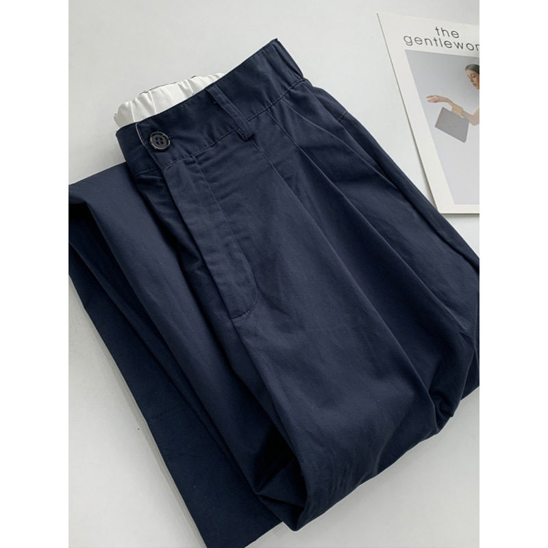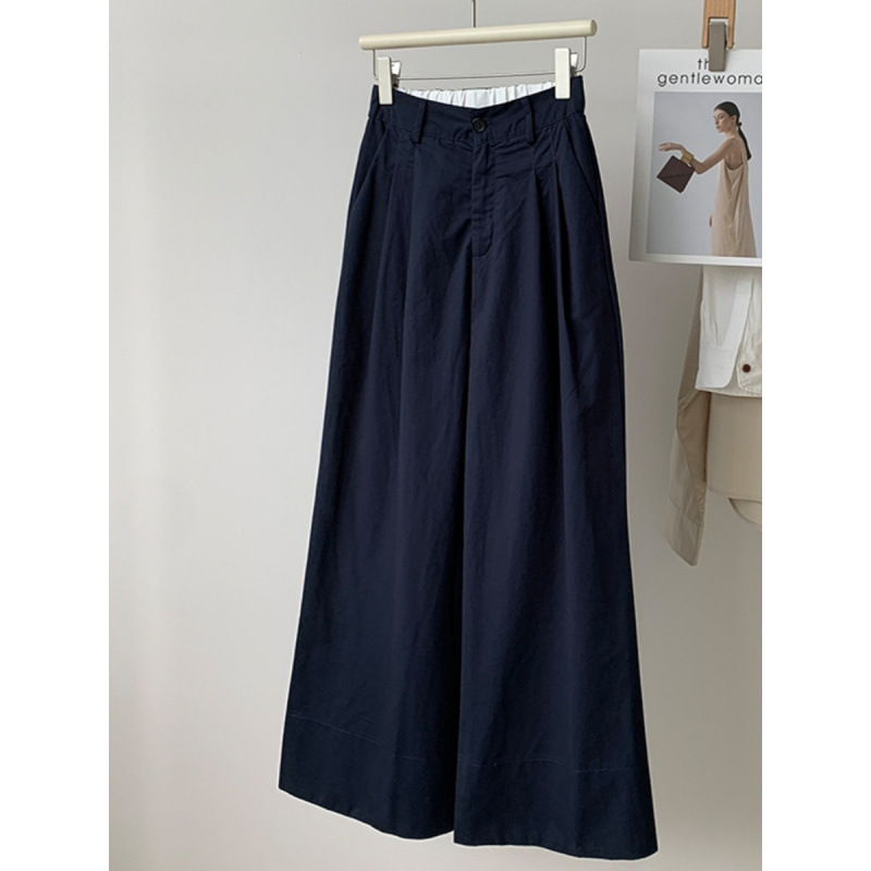 Главная страница > Темно-синие повседневные брюки из мытого хлопка для женщин, летние шикарные универсальные свободные широкие брюки в корейском стиле с высокой талией