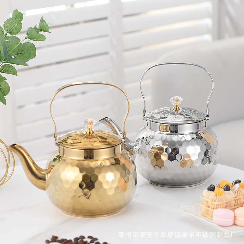 Главная страница > Трансграничный чайник из нержавеющей стали с ребристым легким роскошным чайником Ресторан Отель Чайник с фильтром Сетка Домашний чайник
