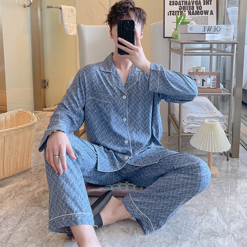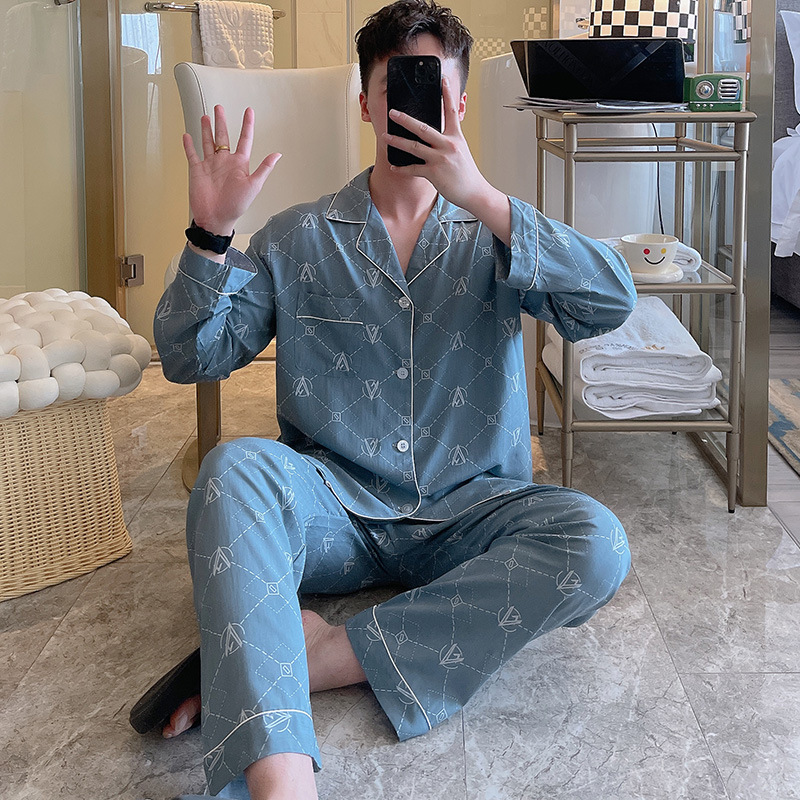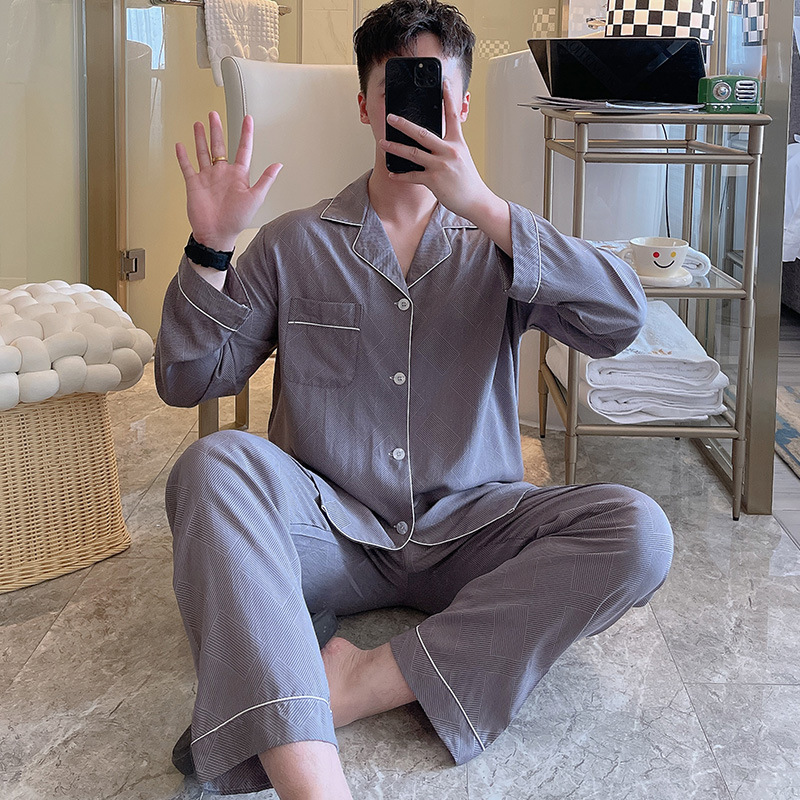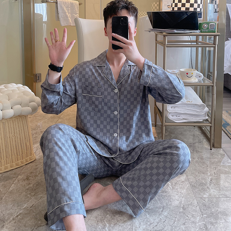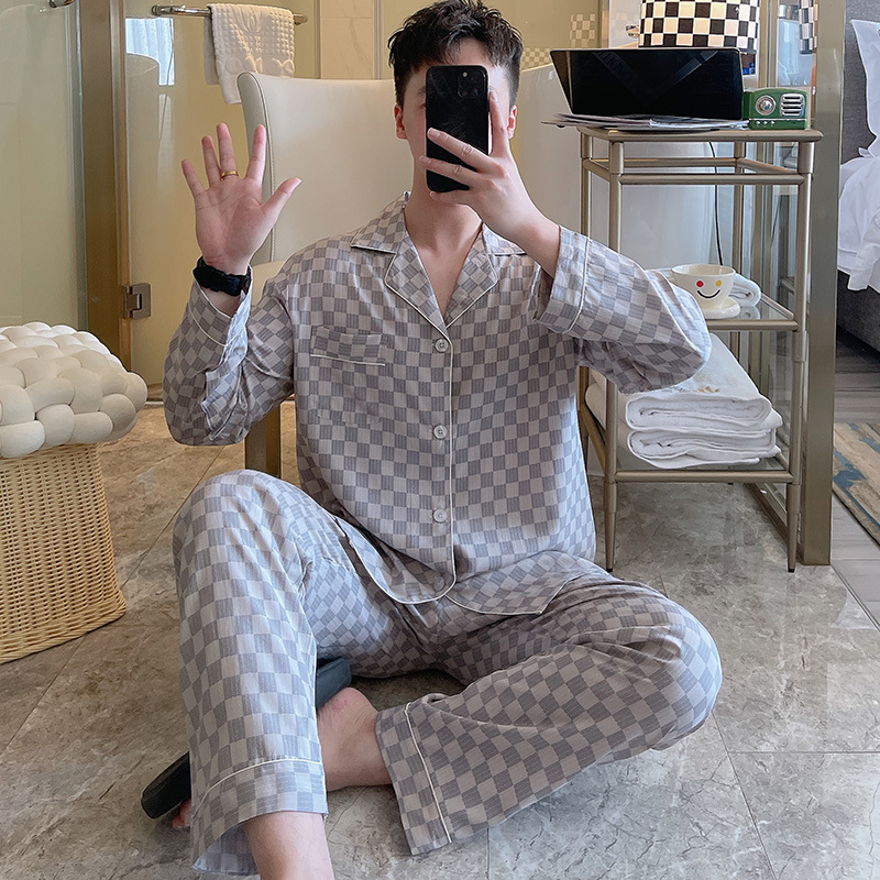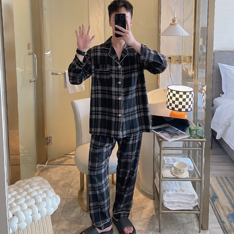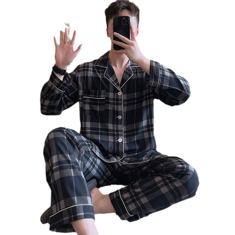 Главная страница > Пижама мужская весна и осень с длинными рукавами хлопкового шелка в клетку 2025 новая мужская домашняя одежда можно носить на улице