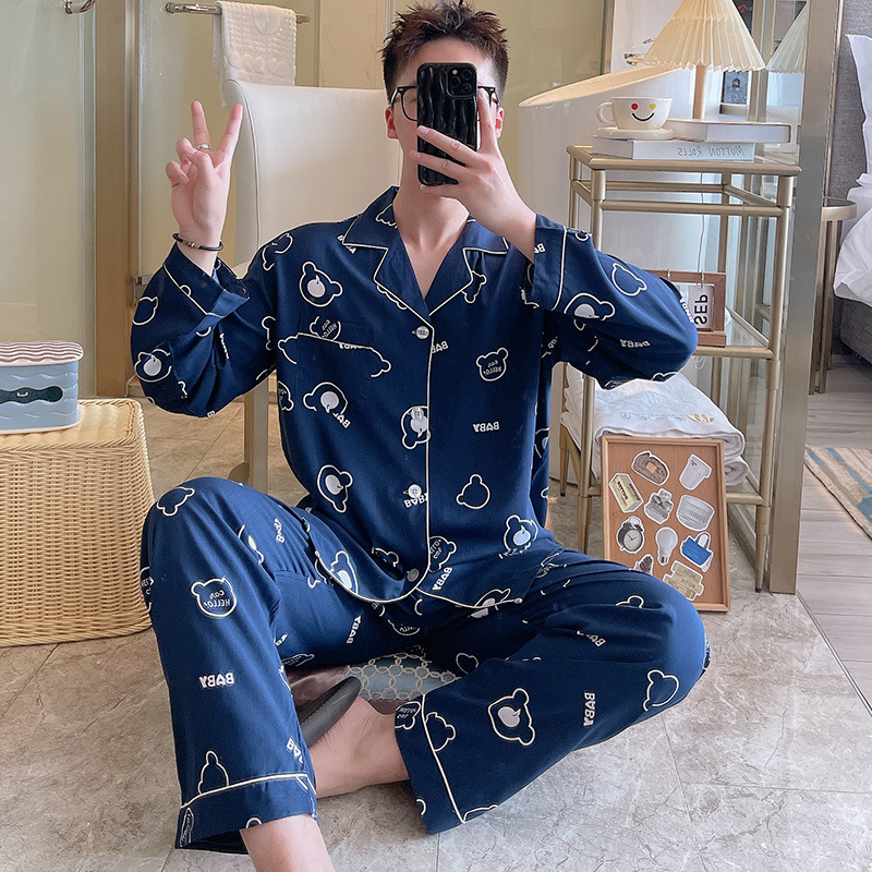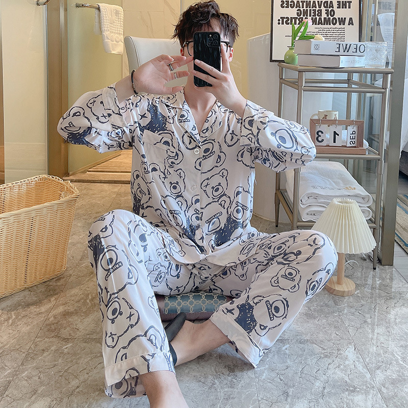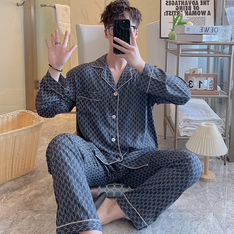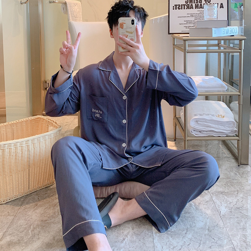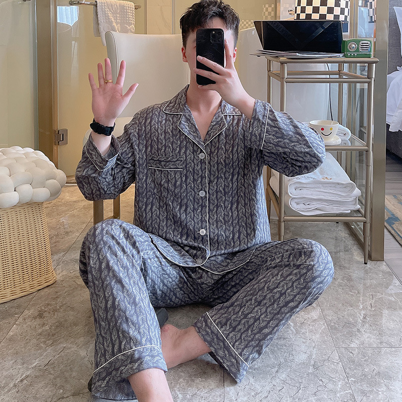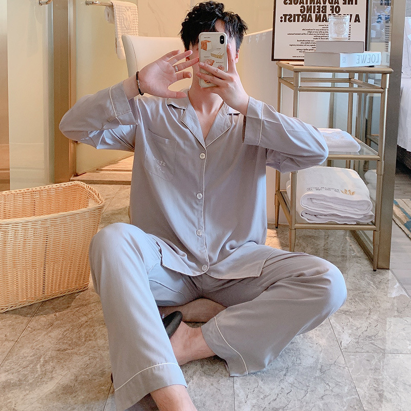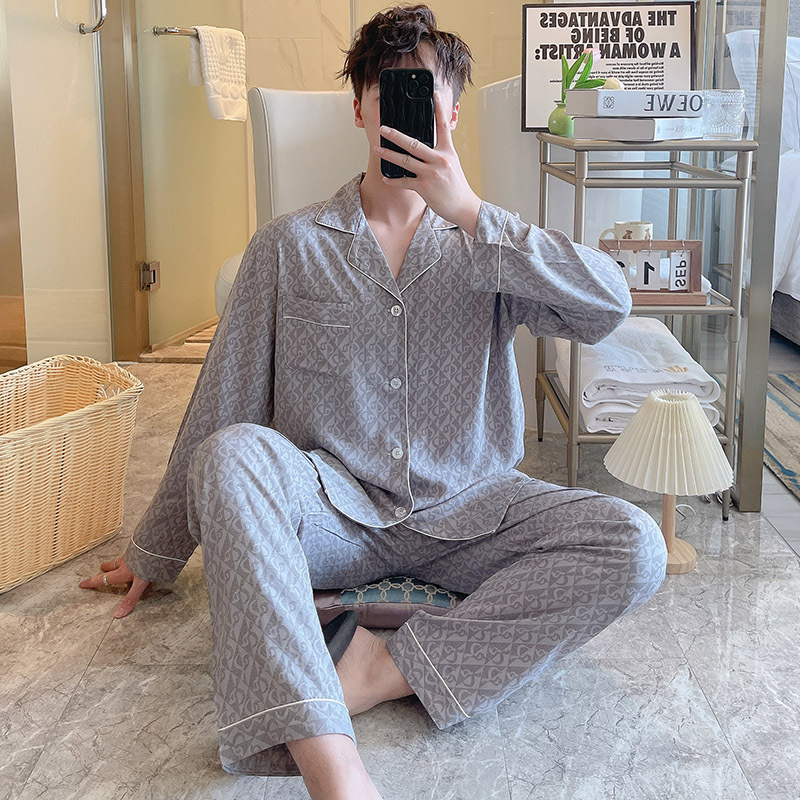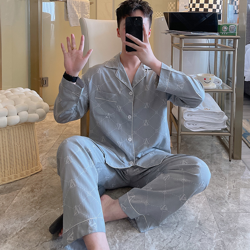 Главная страница > Пижама мужская весна и осень с длинными рукавами хлопкового шелка в клетку 2025 новая мужская домашняя одежда можно носить на улице
