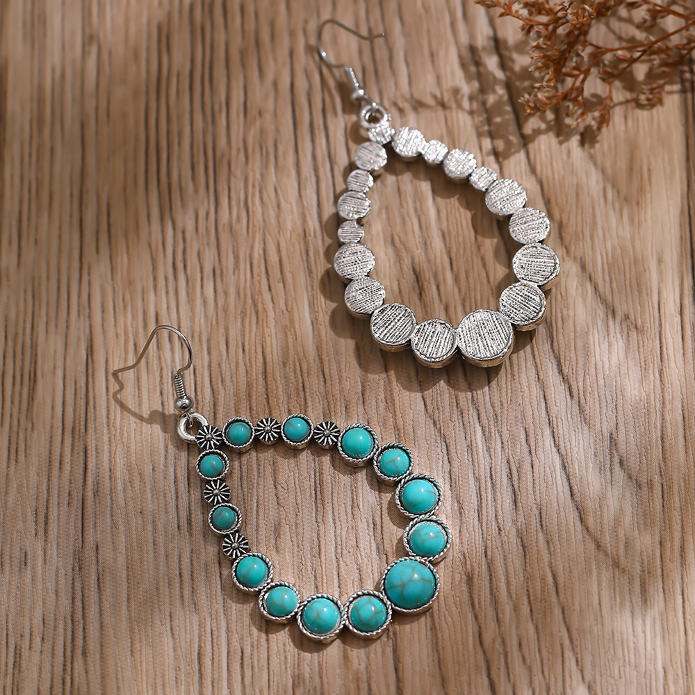 Европа и США трансграничные Amazon новые винтажные серьги личности преувеличенные бирюзовые серьги с полыми серьгами