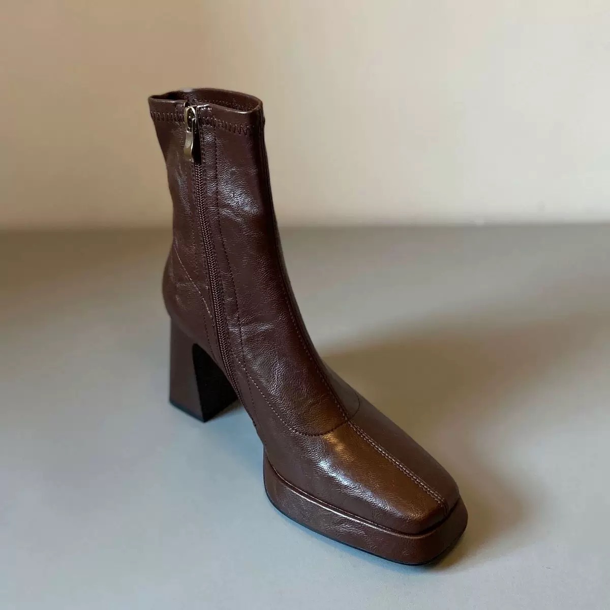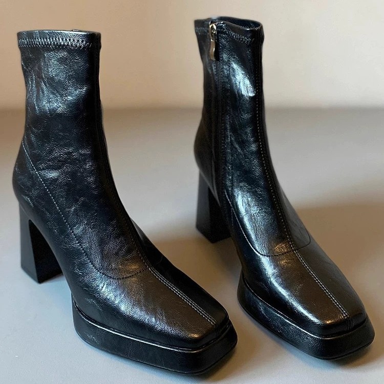 Главная страница > Женские короткие сапоги на высоком каблуке, новинка 2025 года, осенне-зимние, маленькие размеры, водонепроницаемые, на платформе, с массивным каблуком, челси, французские облегающие сапоги