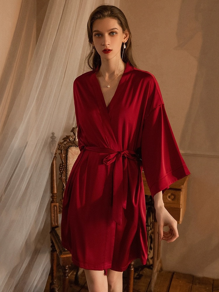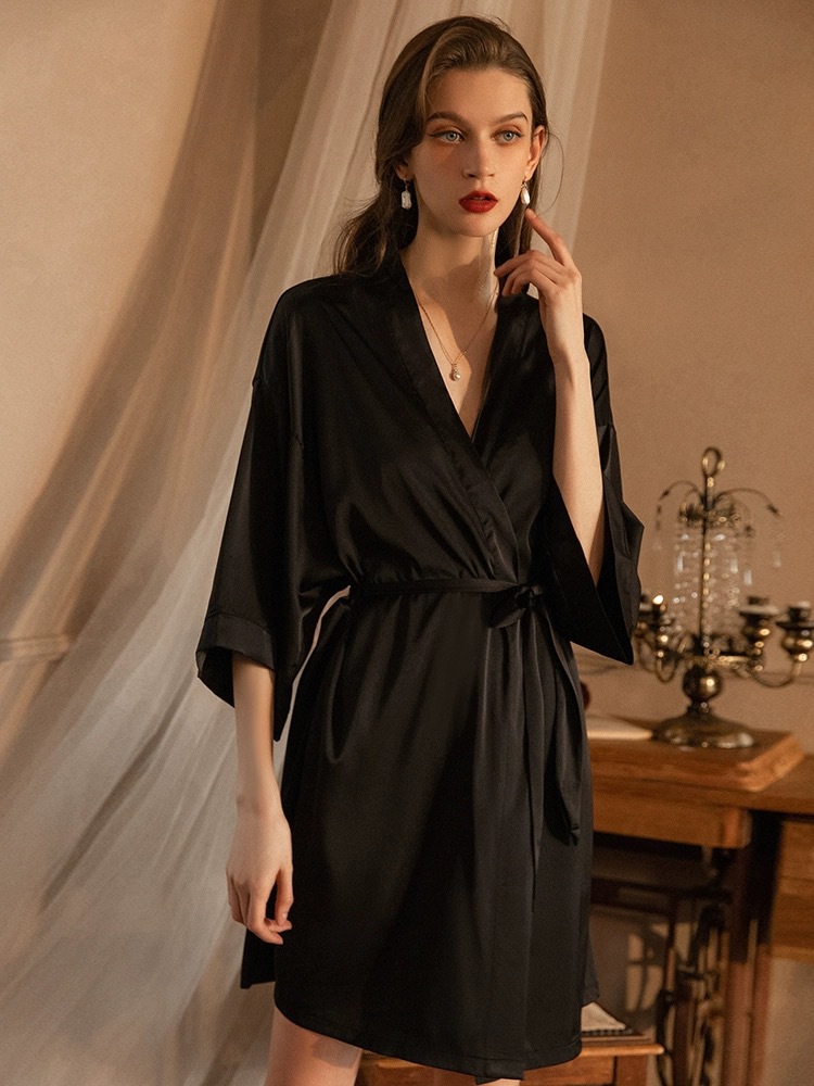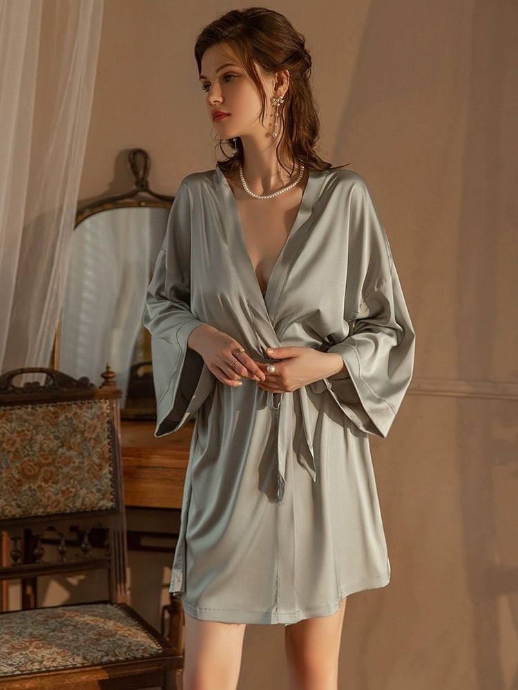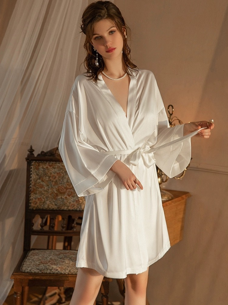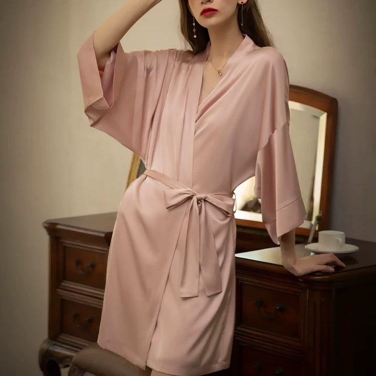 Главная страница > Сексуальный шелковый женский халат свадебный халат Ледяной шелк свободная пижама большого размера Домашний костюм с короткими рукавами Летняя пижама симулятор