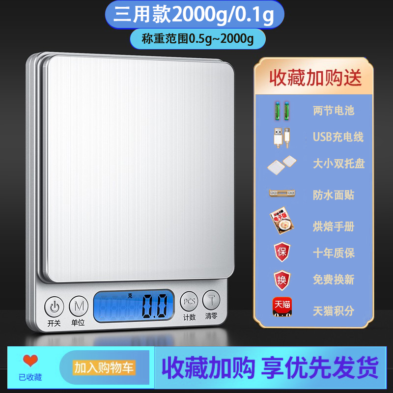 Трехцелевая модель 1kg /0,1 г+кабель для зарядки+аккумулятор+двойные лотки+роскошный подарок