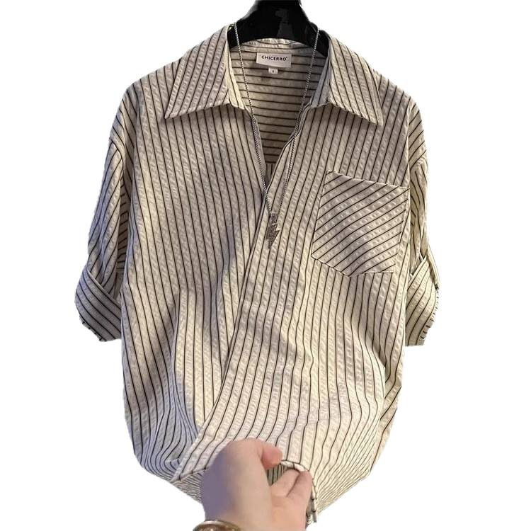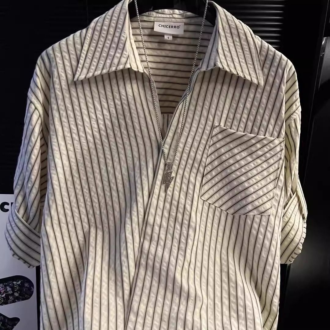 Главная страница > Летняя американская рубашка в полоску в стиле легкой роскоши 2025 года, классический универсальный дизайн, высококачественная мужская рубашка с лацканами