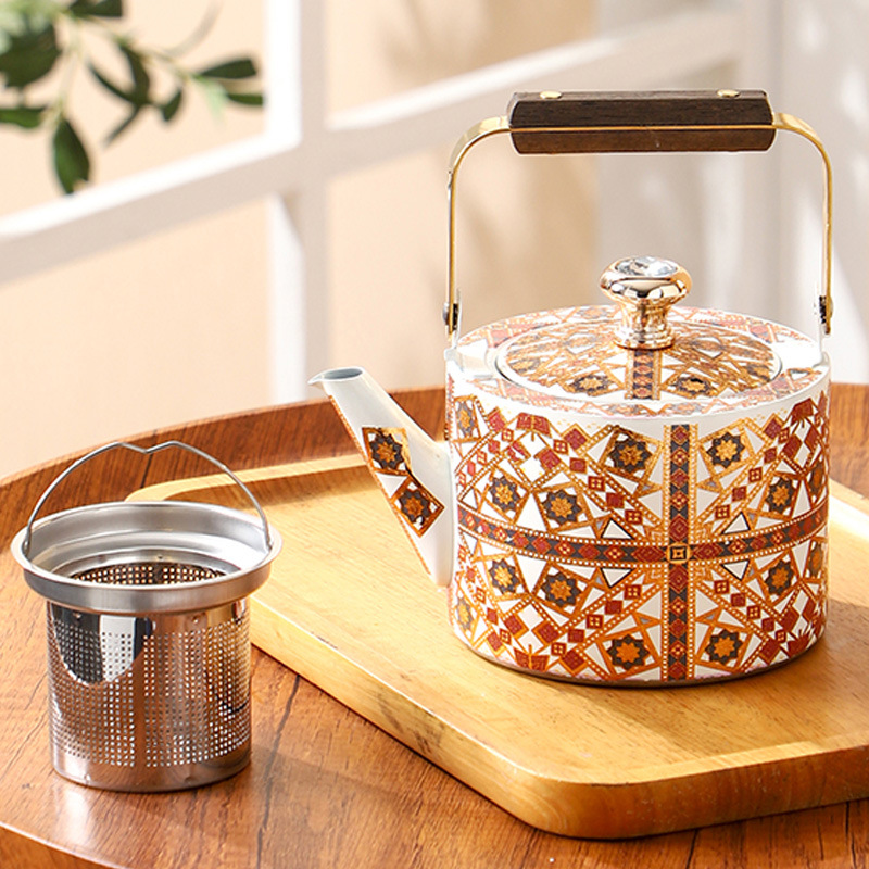 Главная страница > Чайник из нержавеющей стали легкий и роскошный чайник большой емкости послеобеденный чайник ближневосточный Синьцзян национальный стиль цветочный чайник