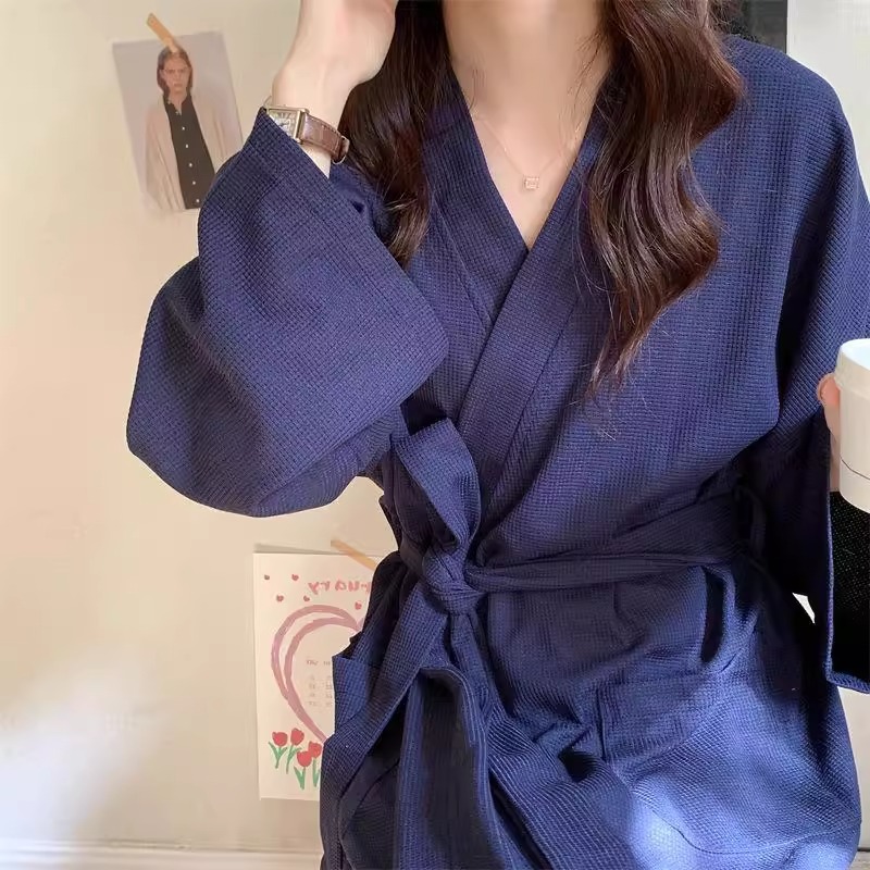 Главная страница > Домашняя одежда вафельная ночная сорочка высококачественные пижамы для женщин весна и осень 2025 новинка женское кимоно средней длины лето
