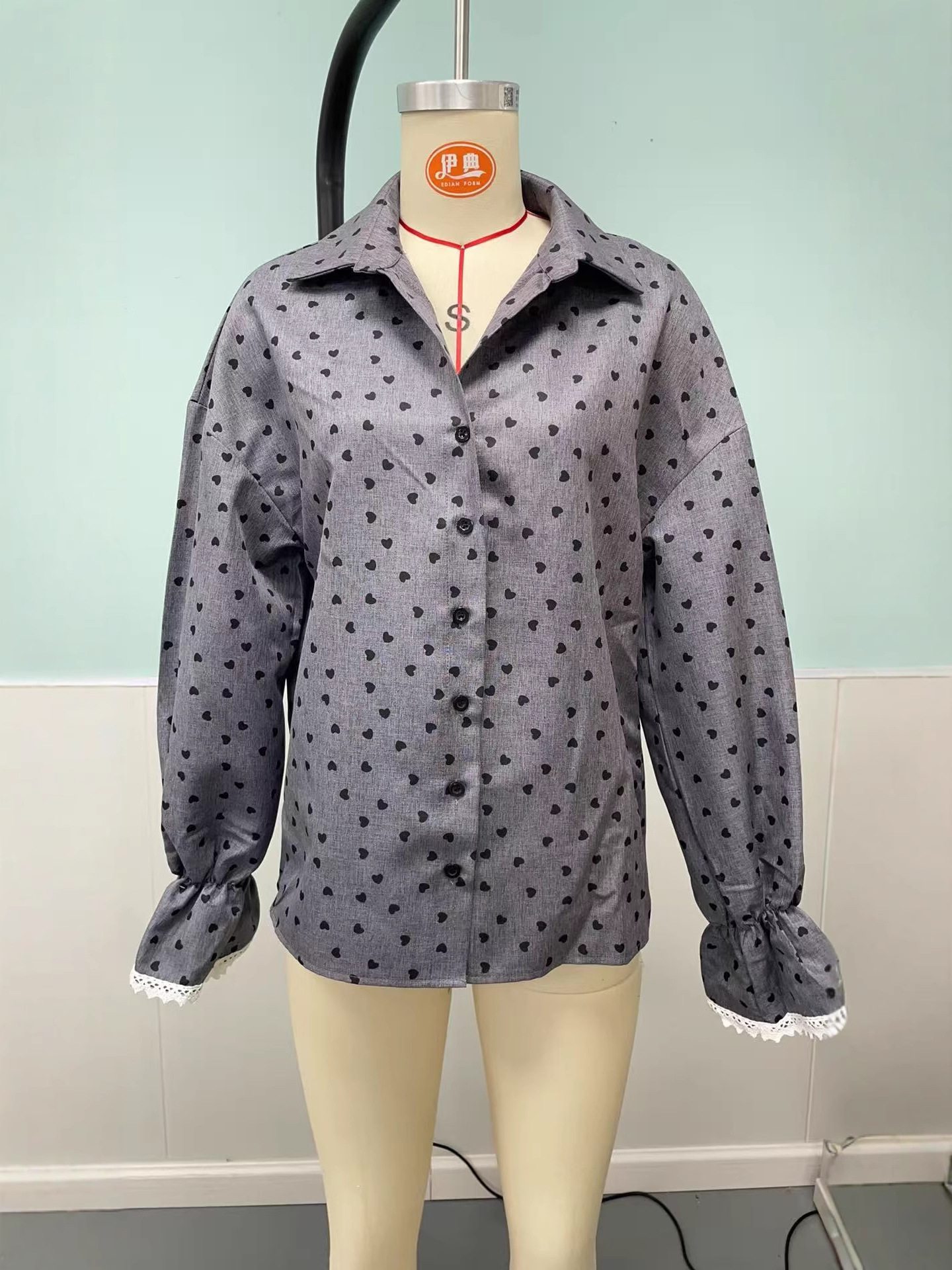 Главная страница > В наличии: женская свободная повседневная блузка с длинным рукавом и рукавами-фонариками в горошек в форме сердца, в европейском и американском стиле, для трансграничной торговли, модель 2025 года.