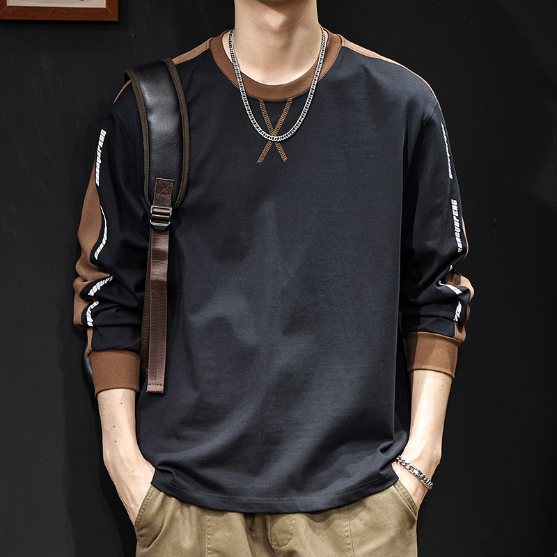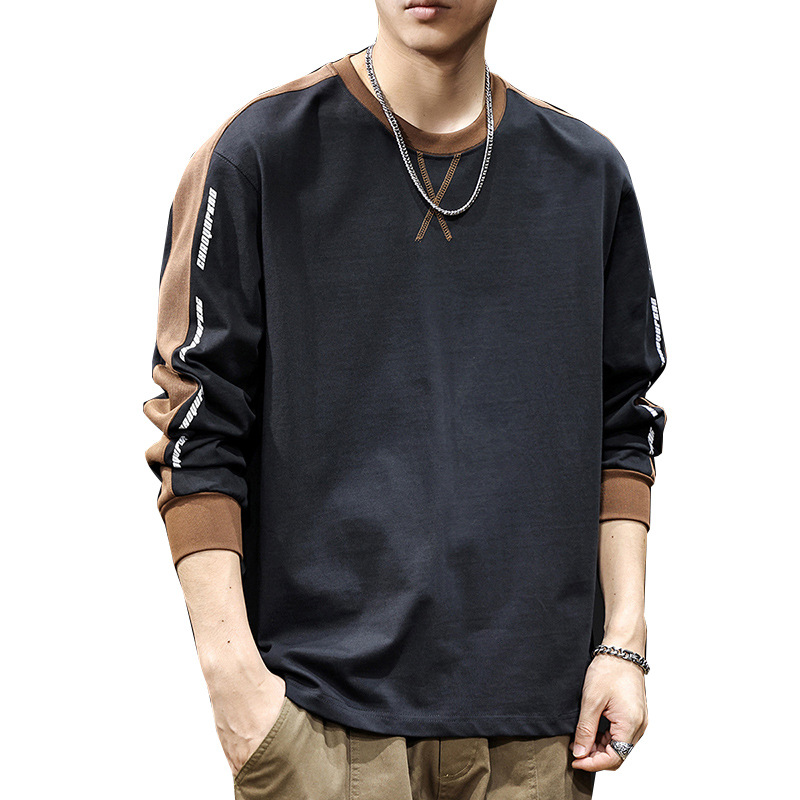 Главная страница > Мужская футболка с длинным рукавом в стиле колор-блок, новинка осени 2025, базовая одежда с круглым вырезом для мужчин, весенне-осенний стиль, топ больших размеров.