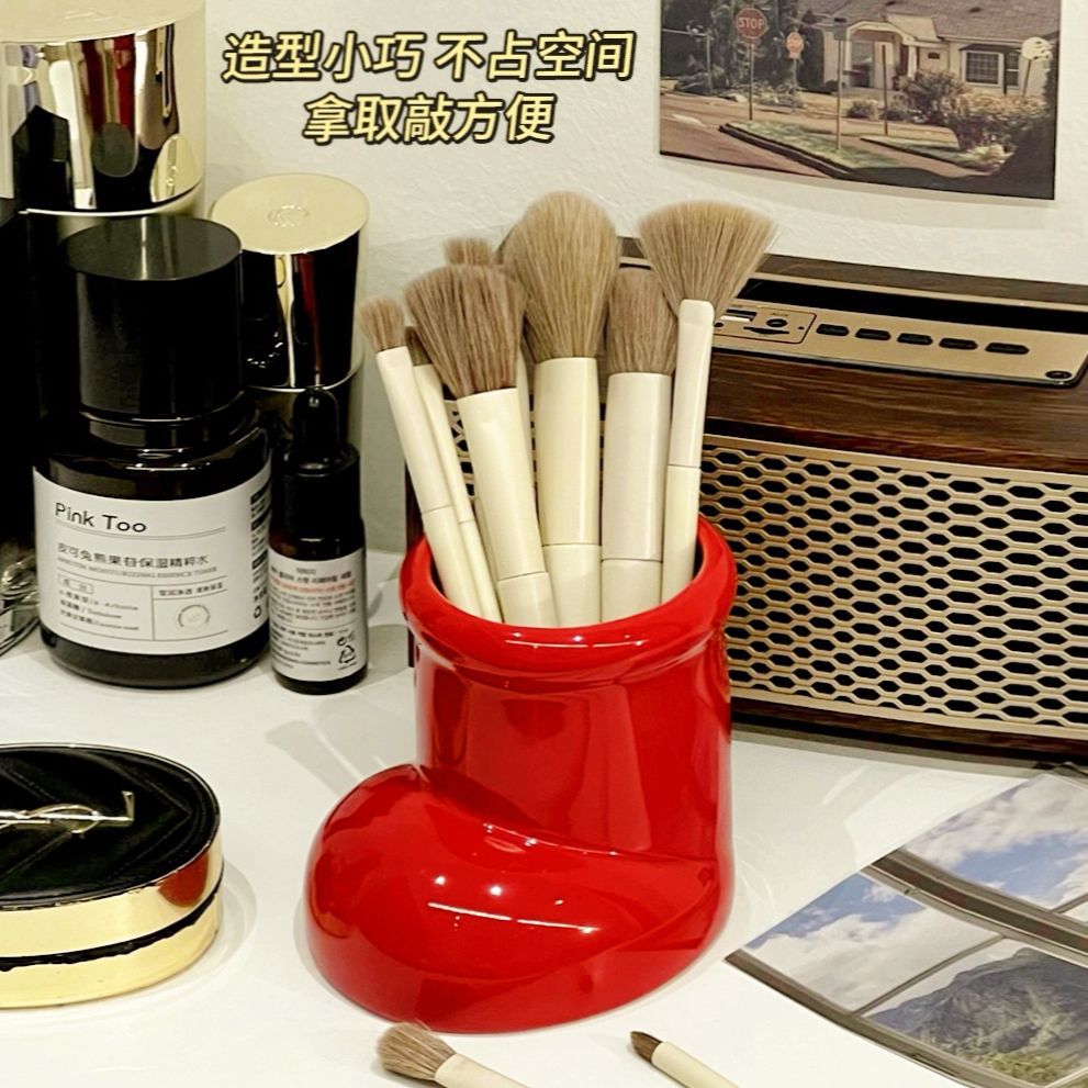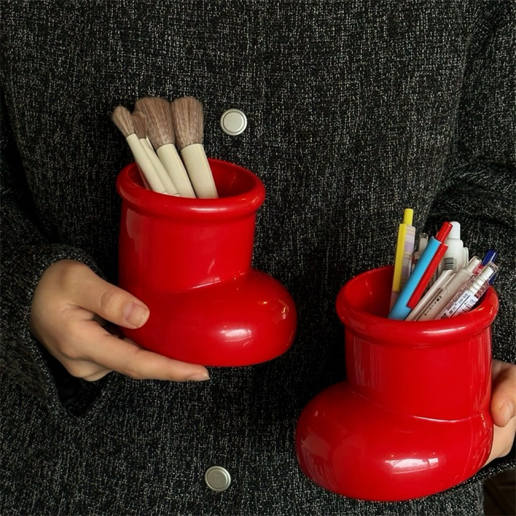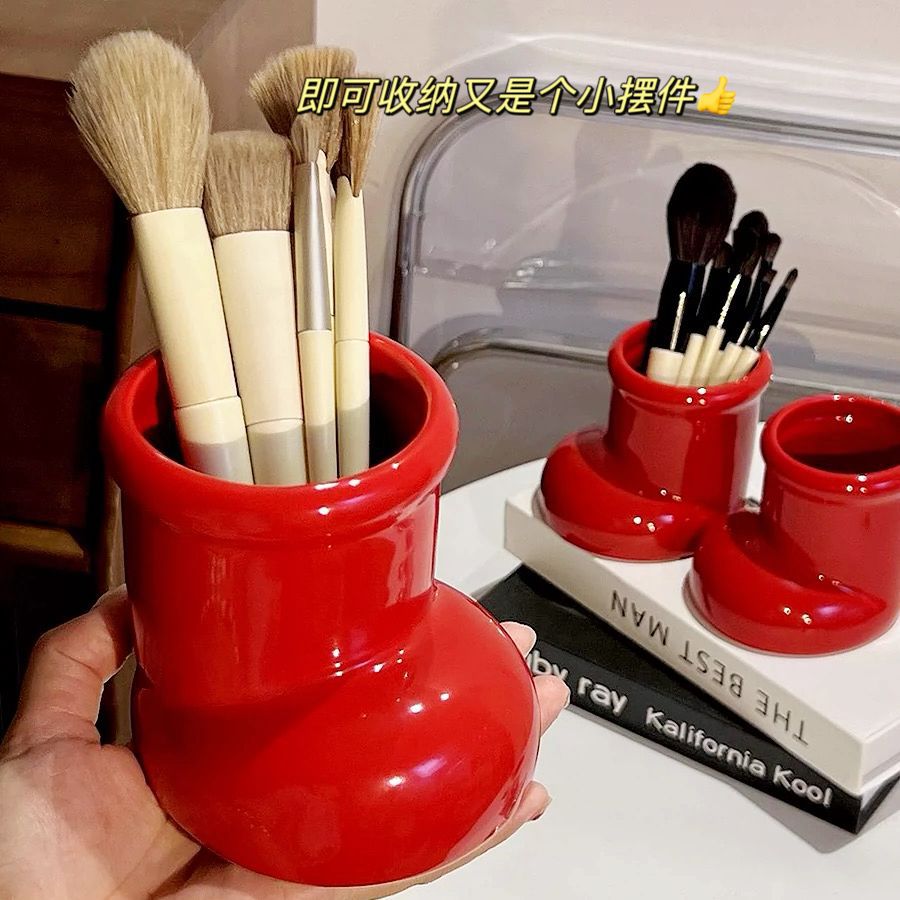 Милые маленькие красные сапожки, держатель для ручек, пластиковый высококачественный студенческий настольный ретро-ваза, многофункциональное хранилище для кистей для макияжа
