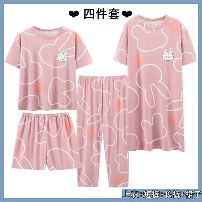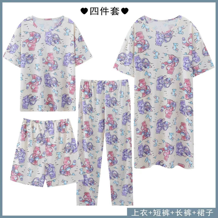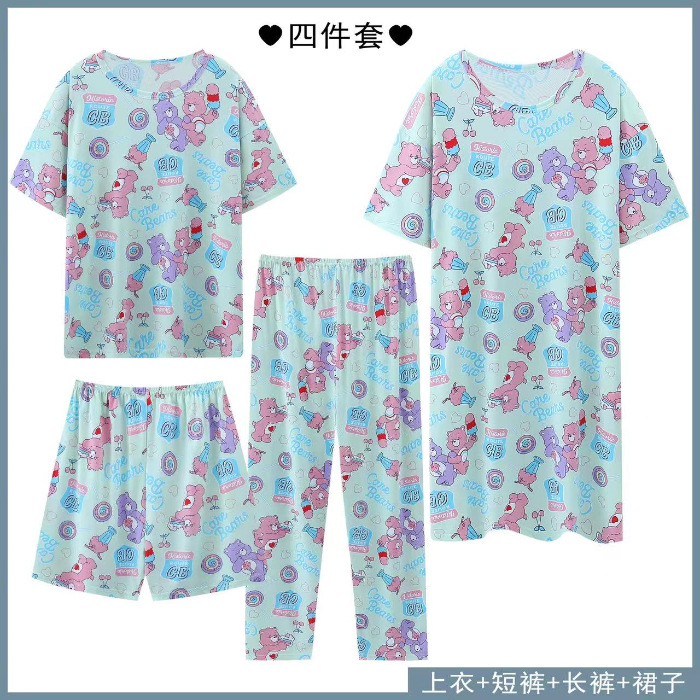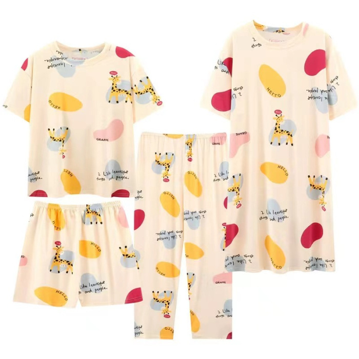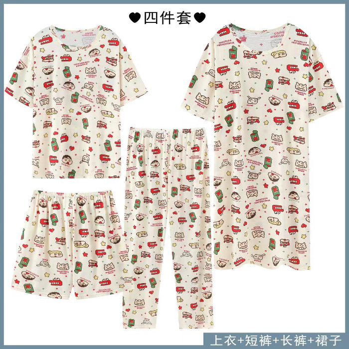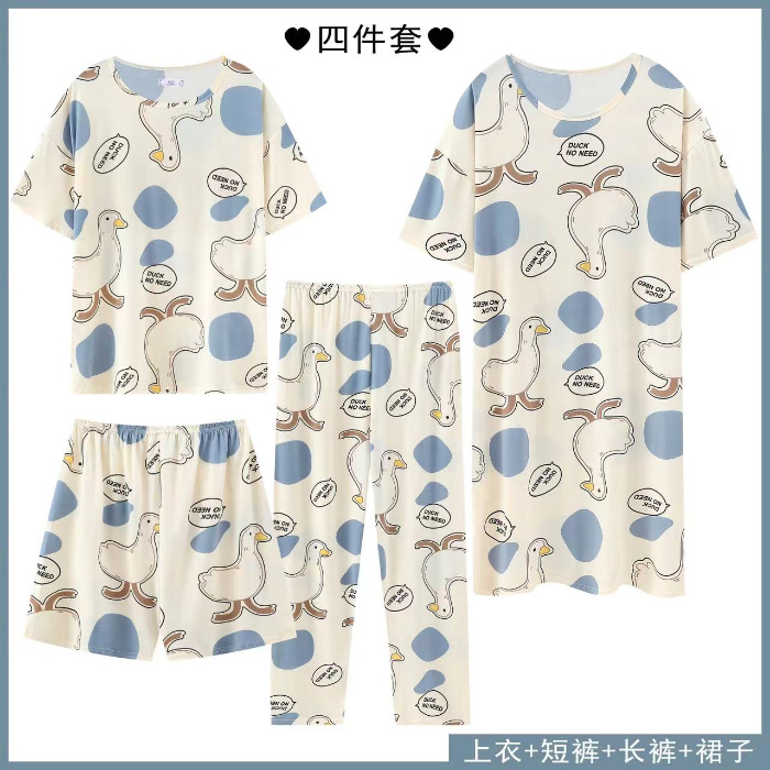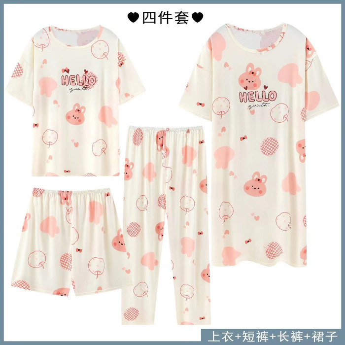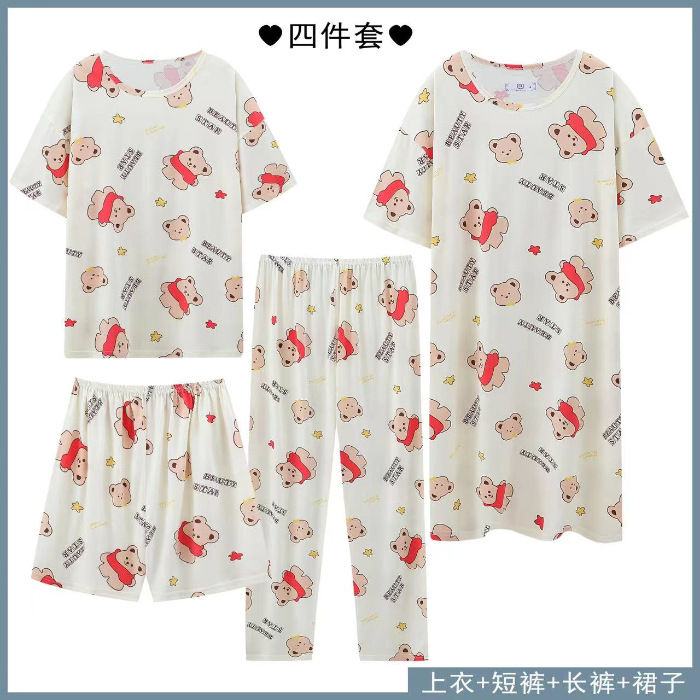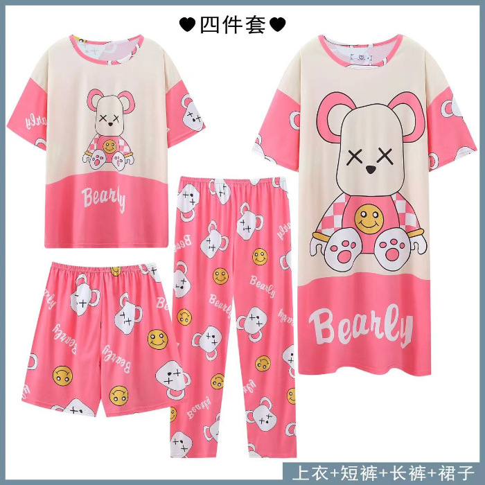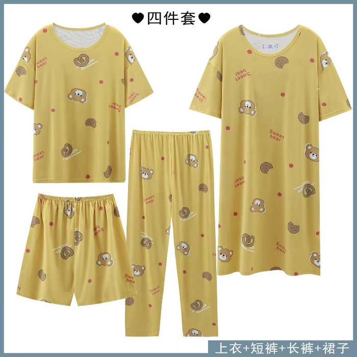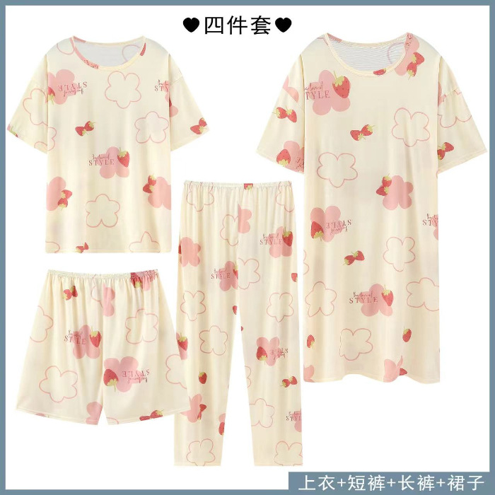 Главная страница > Четырехсекционный набор пижамных женских весенних и осенних шорт с короткими рукавами и короткими рукавами