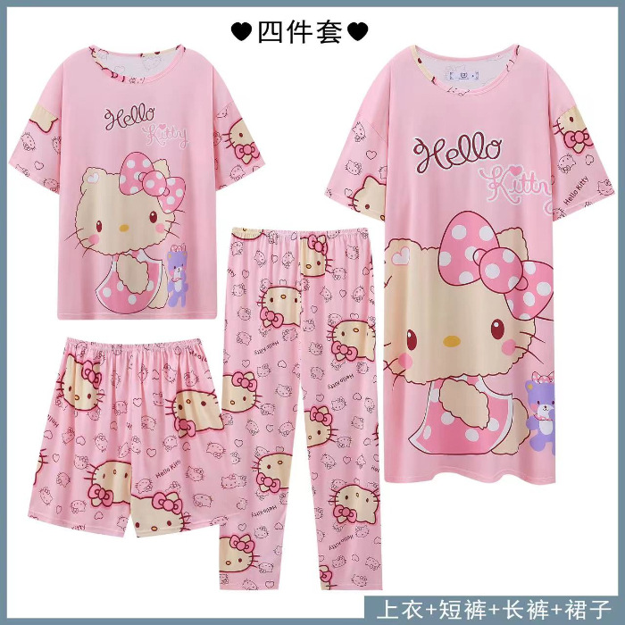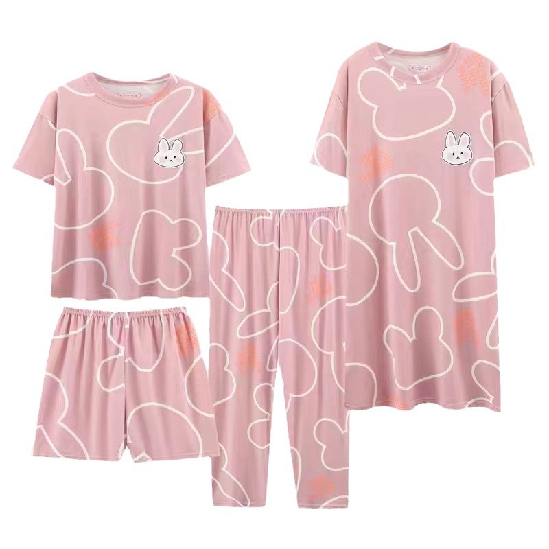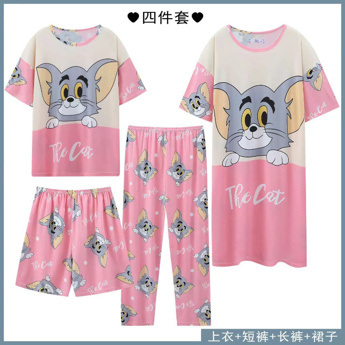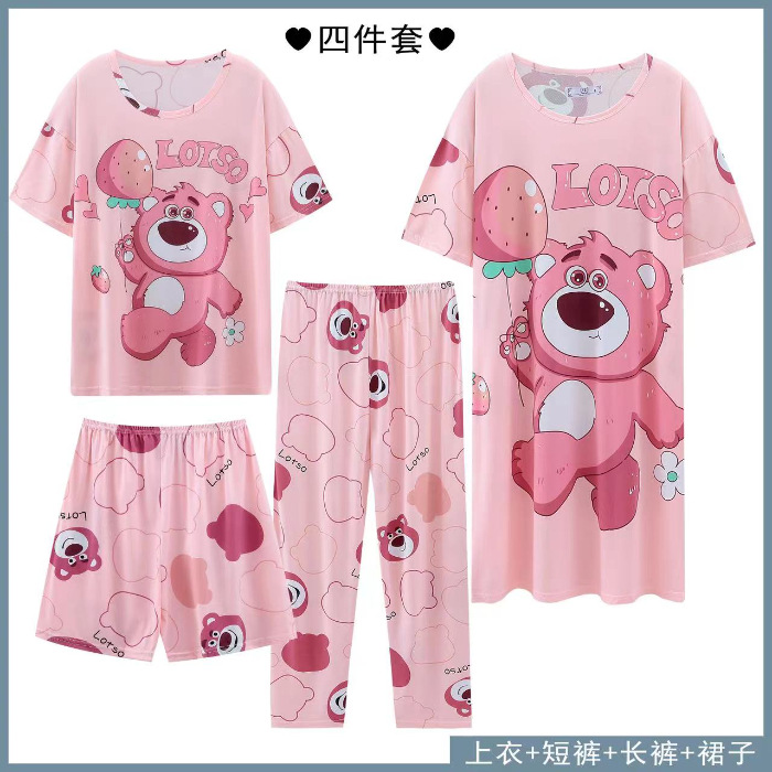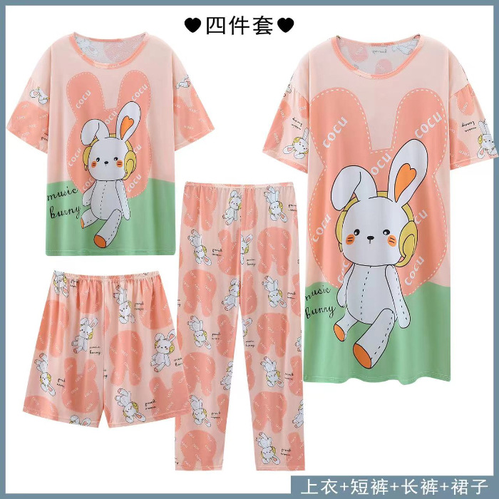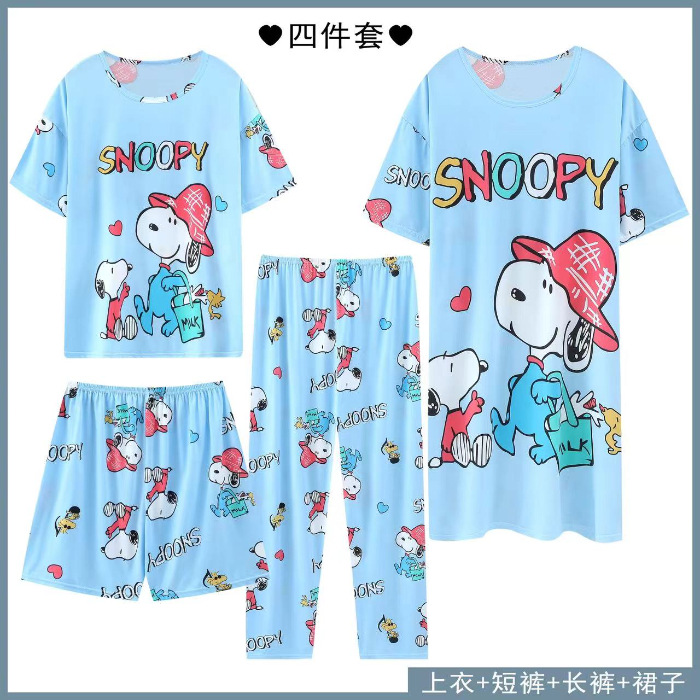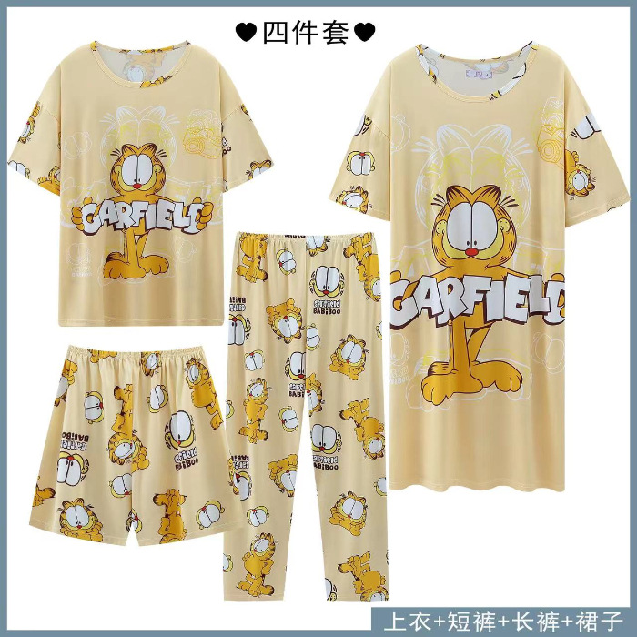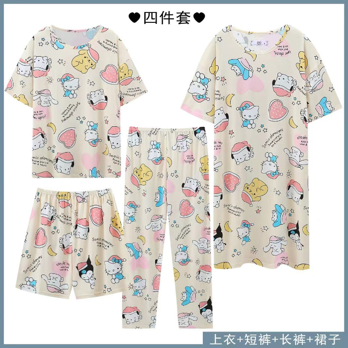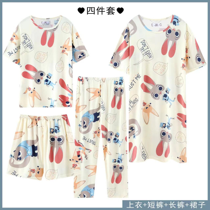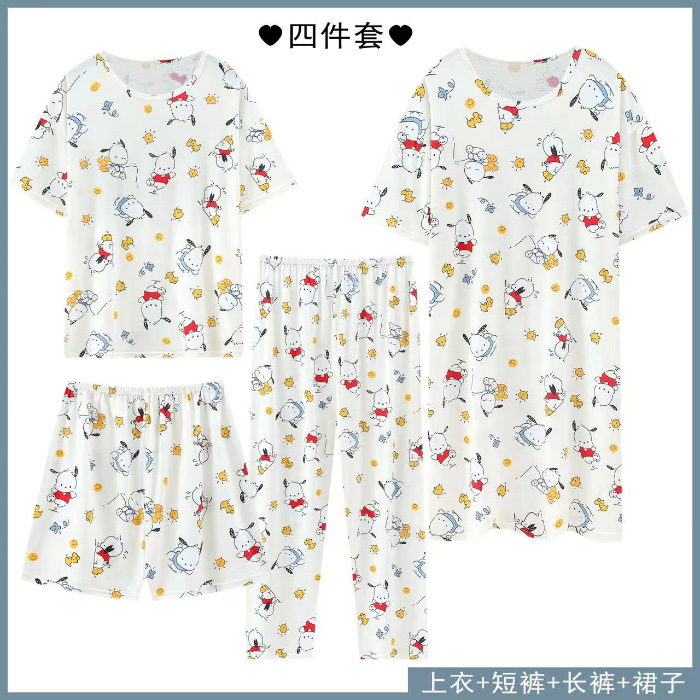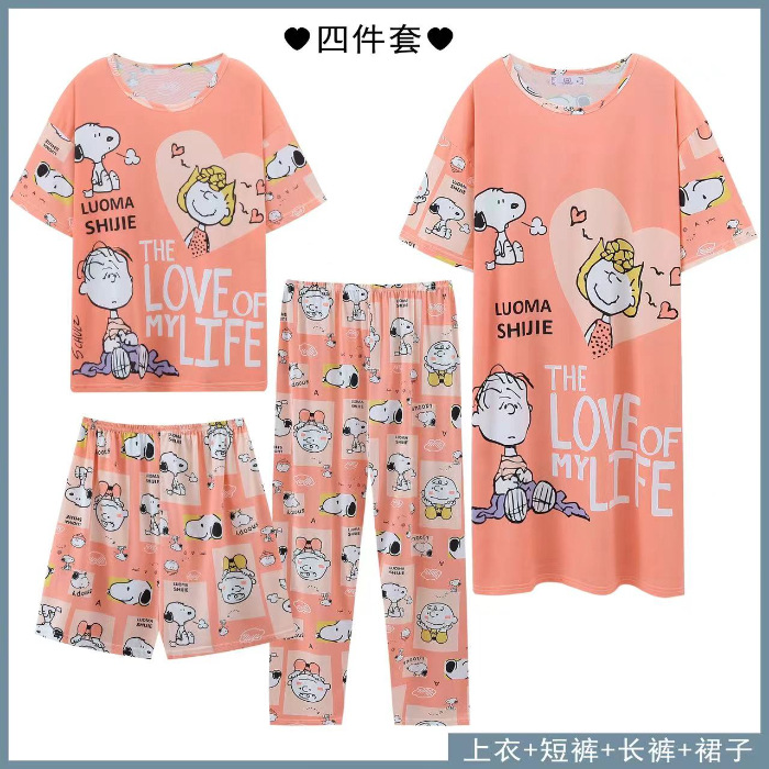Главная страница > Четырехсекционный набор пижамных женских весенних и осенних шорт с короткими рукавами и короткими рукавами