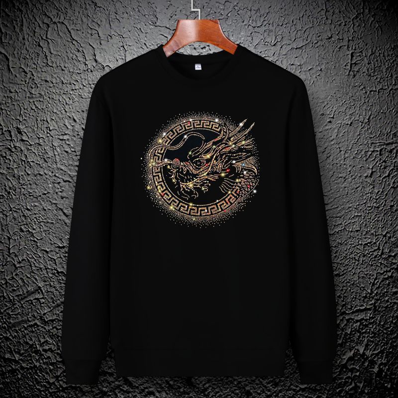 Главная страница > 2024 новый мужской свитник модный тренд дракон дизайн горячего бриллианта повседневный толстый тонкий топ дракон узор
