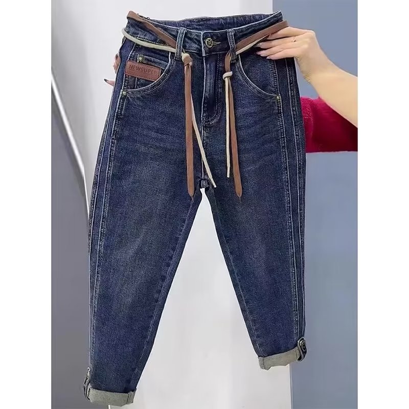 Главная страница > Женские джинсы Harlan с высокой талией, новинка на весну и осень, грушевидная фигура больших размеров, пухлая девушка, мм, стройные маленькие Морковные брюки