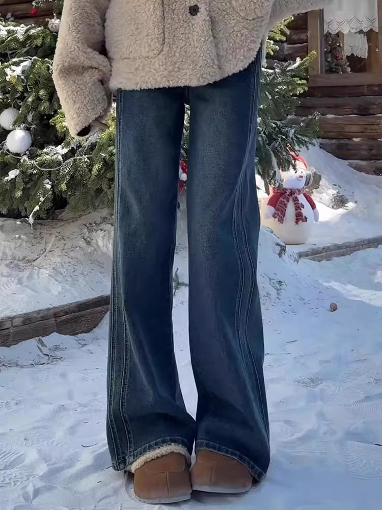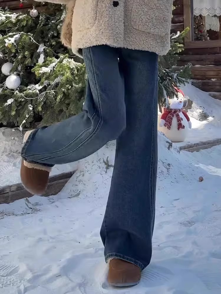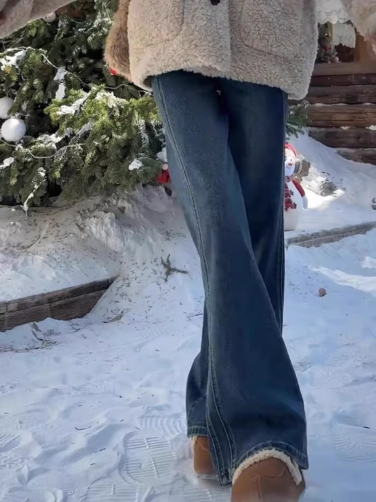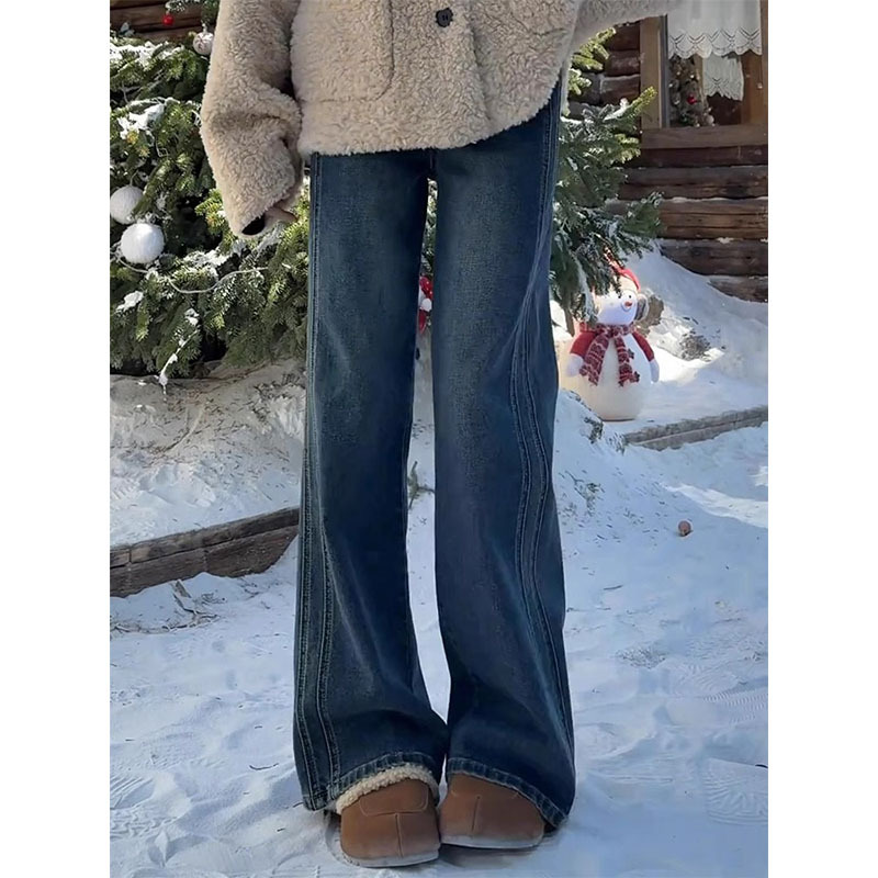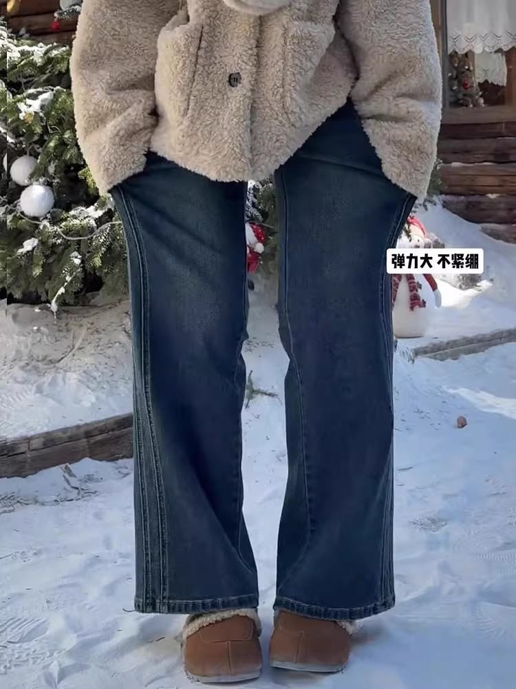 Главная страница > Винтажные широкие женские джинсы, новые осенние утягивающие свободные драпированные брюки с высокой талией, закрывающие бедра, прямые брюки больших размеров для пышных женщин.