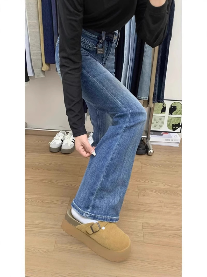 Высокие женские синие расклешенные джинсы в американском ретро стиле, новые утягивающие брюки-клеш с высокой талией на весну и осень.