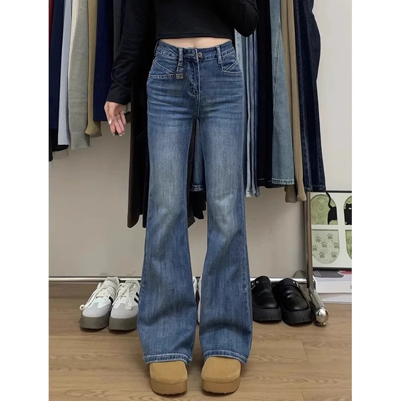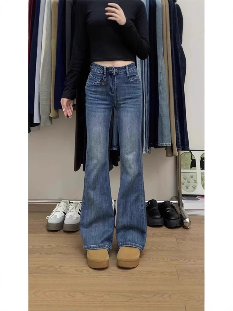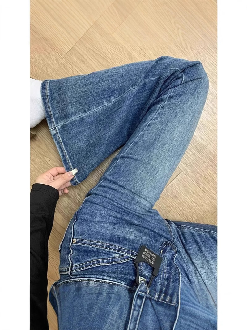 Главная страница > Высокие женские синие расклешенные джинсы в американском ретро стиле, новые утягивающие брюки-клеш с высокой талией на весну и осень.