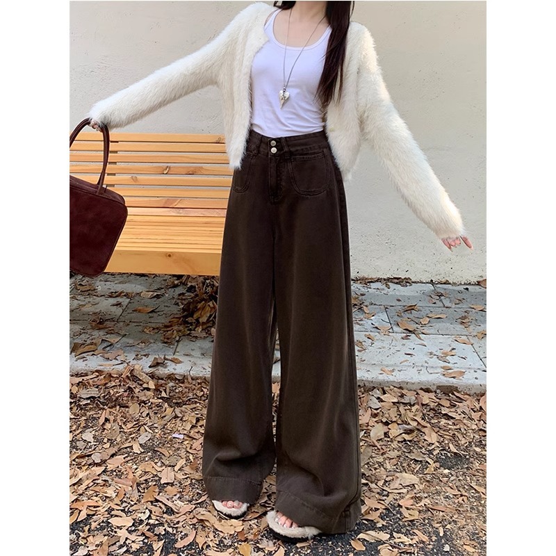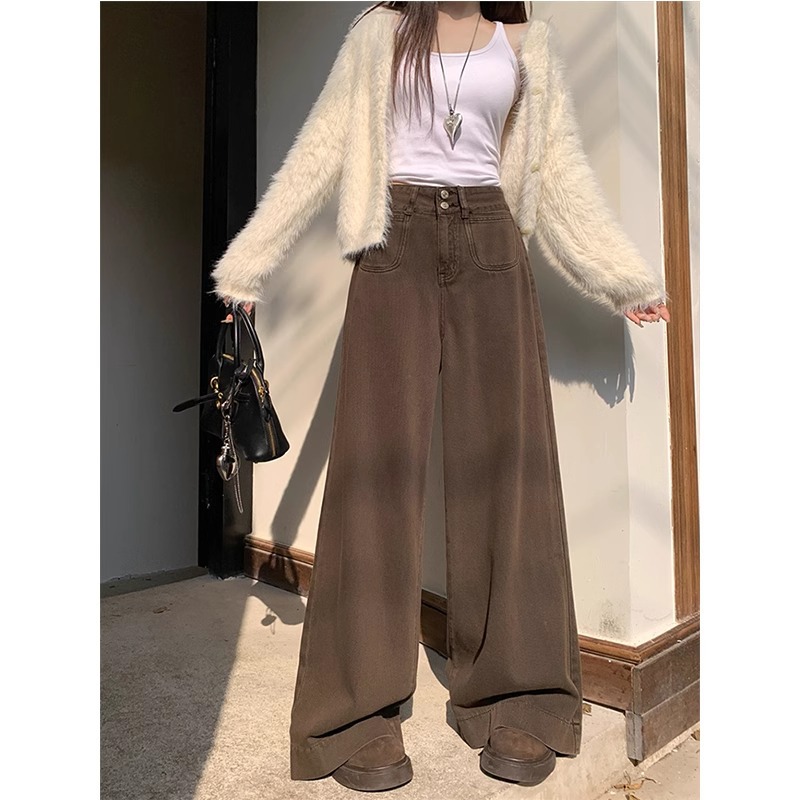 Главная страница > Женские американские ретро широкие джинсы весной и осенью новые толстые мм с высокой талией тонкие повседневные свободные штаны для швабры