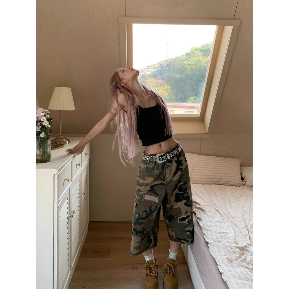 Главная страница > Американский ретро-дырки большого размера с прямым камуфляжным камуфляжным семиочковым джинсами женский дизайн рыхлый, тонкие широкие брюки