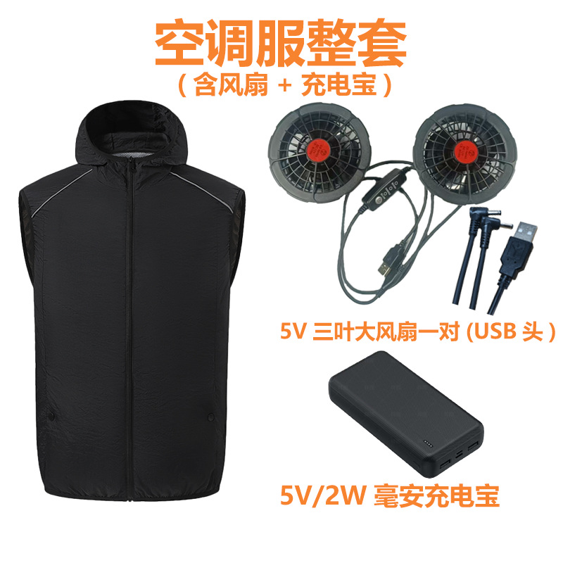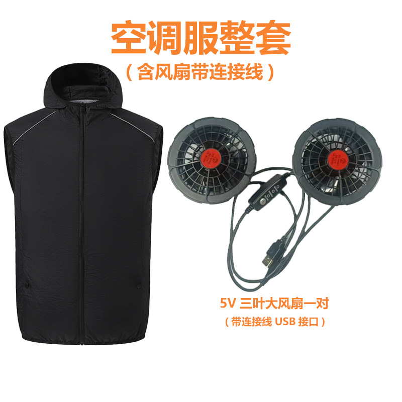 Костюм с кондиционером (черный) [включает вентилятор 5 В (с USB-кабелем регулировки скорости головки) + блок питания 5 В/2 Вт]