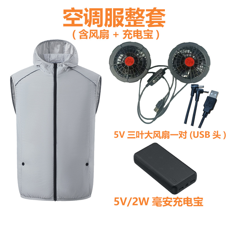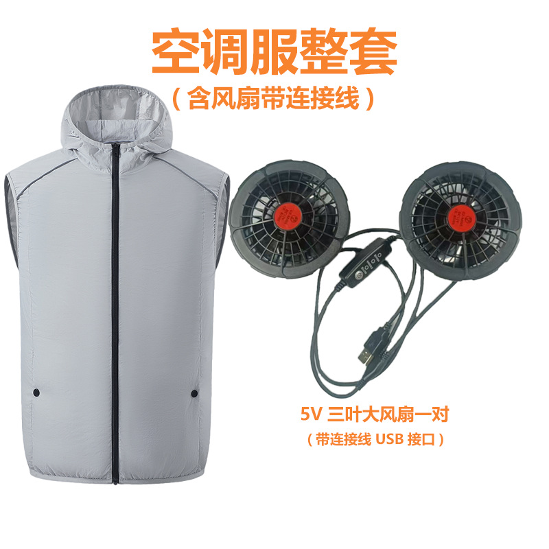 Костюм с кондиционером (серый) [включая вентилятор 5 В (с USB-кабелем регулировки скорости головки)]