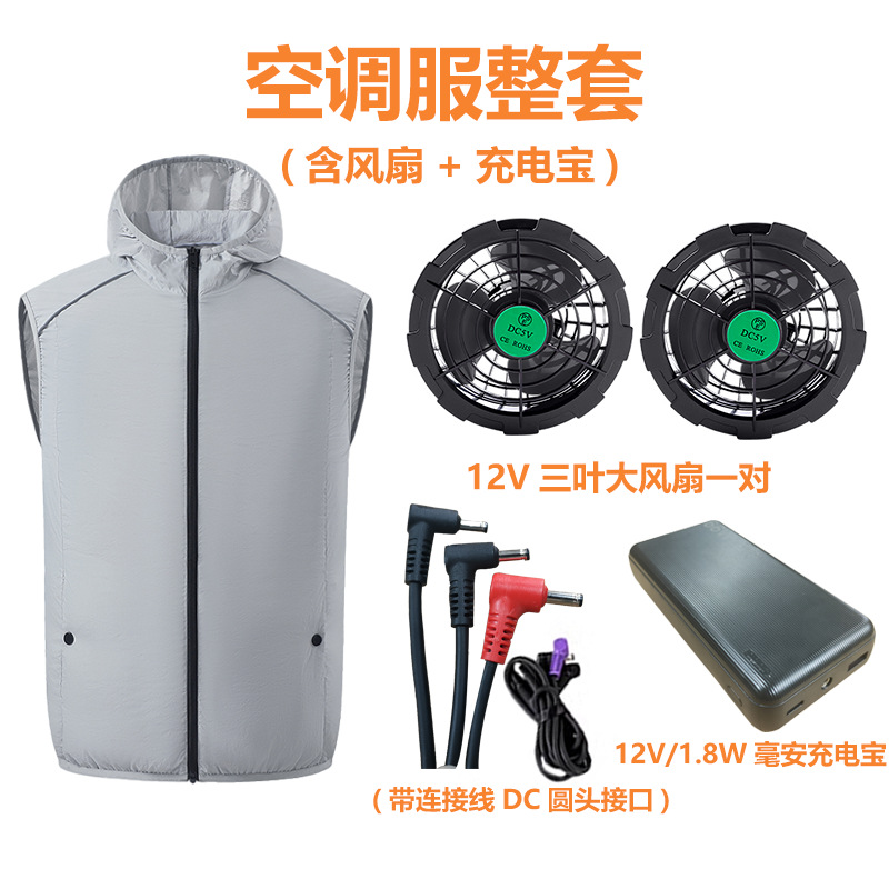 Одежда с кондиционером (серая) [включает вентилятор 12 В (с круглым соединительным кабелем постоянного тока) + блок питания 12 В/1,8 Вт]