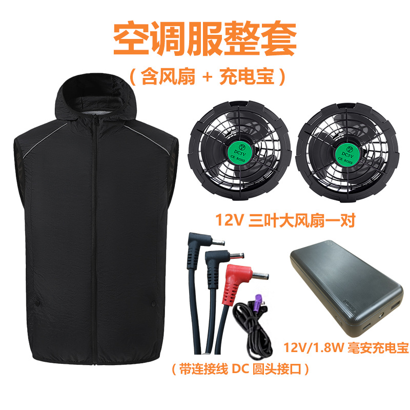 Костюм с кондиционером (черный) [включает вентилятор 12 В (с кабелем постоянного тока с круглой головкой) + блок питания 12 В/2 Вт]