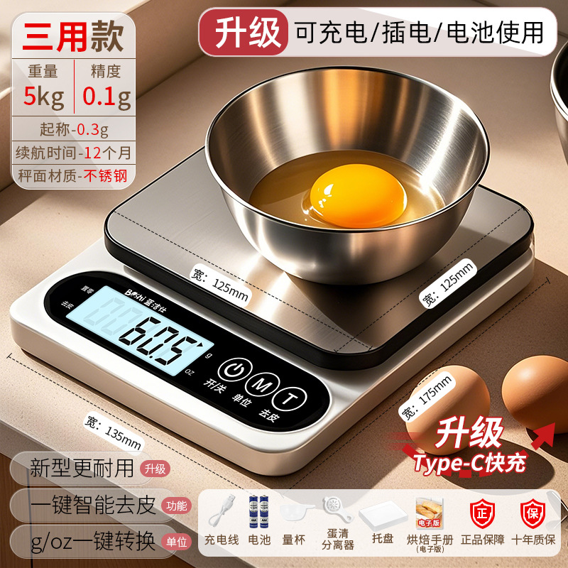 [Зарядка/подключение/двойные батареи] Версия для трех использований, 3 кг/0,1 г (поставляется с подносом + шестью роскошными подарками)