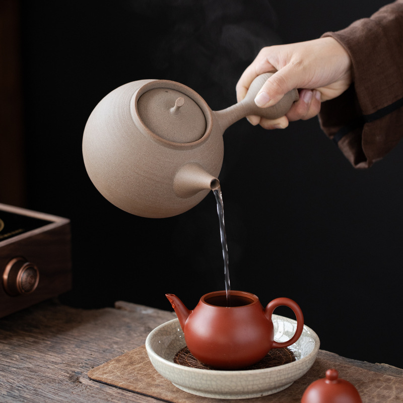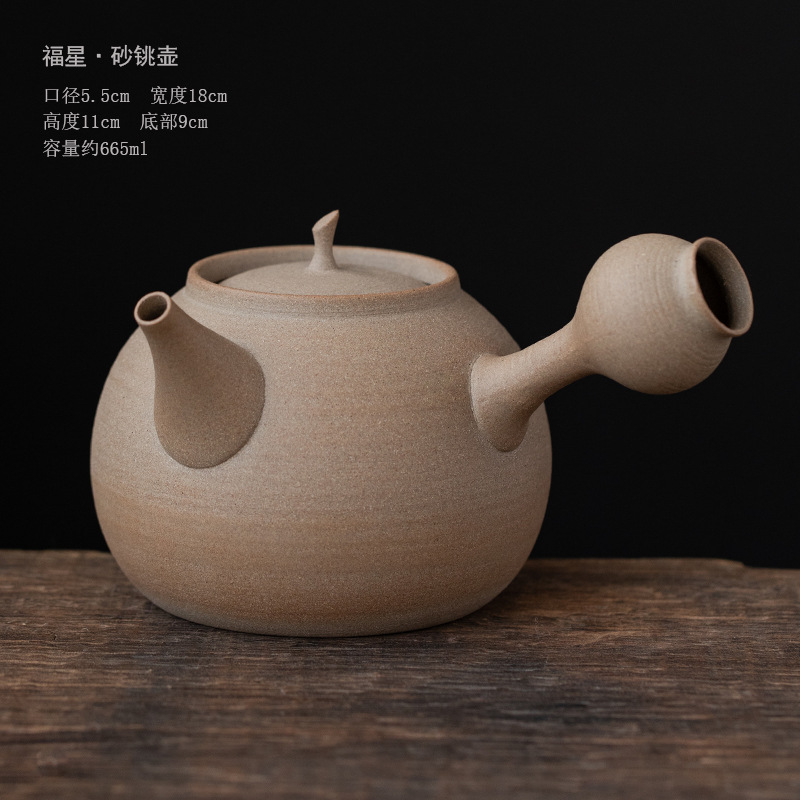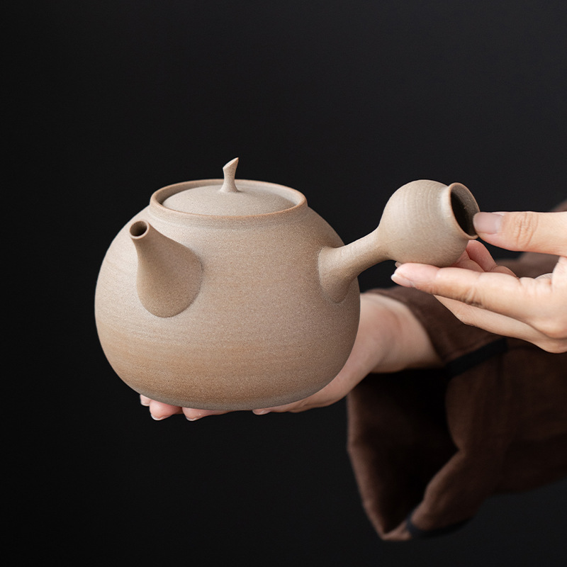 Главная страница > Оригинальный минеральный чайник из старого рок-мульчевого песка с боковой ручкой для домашнего использования, чайник для кипячения воды из грубой керамики, подходит для заваривания чая на угольной печи.