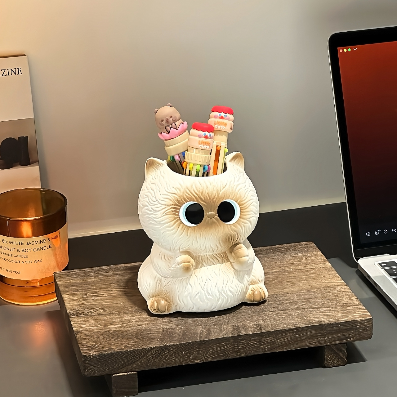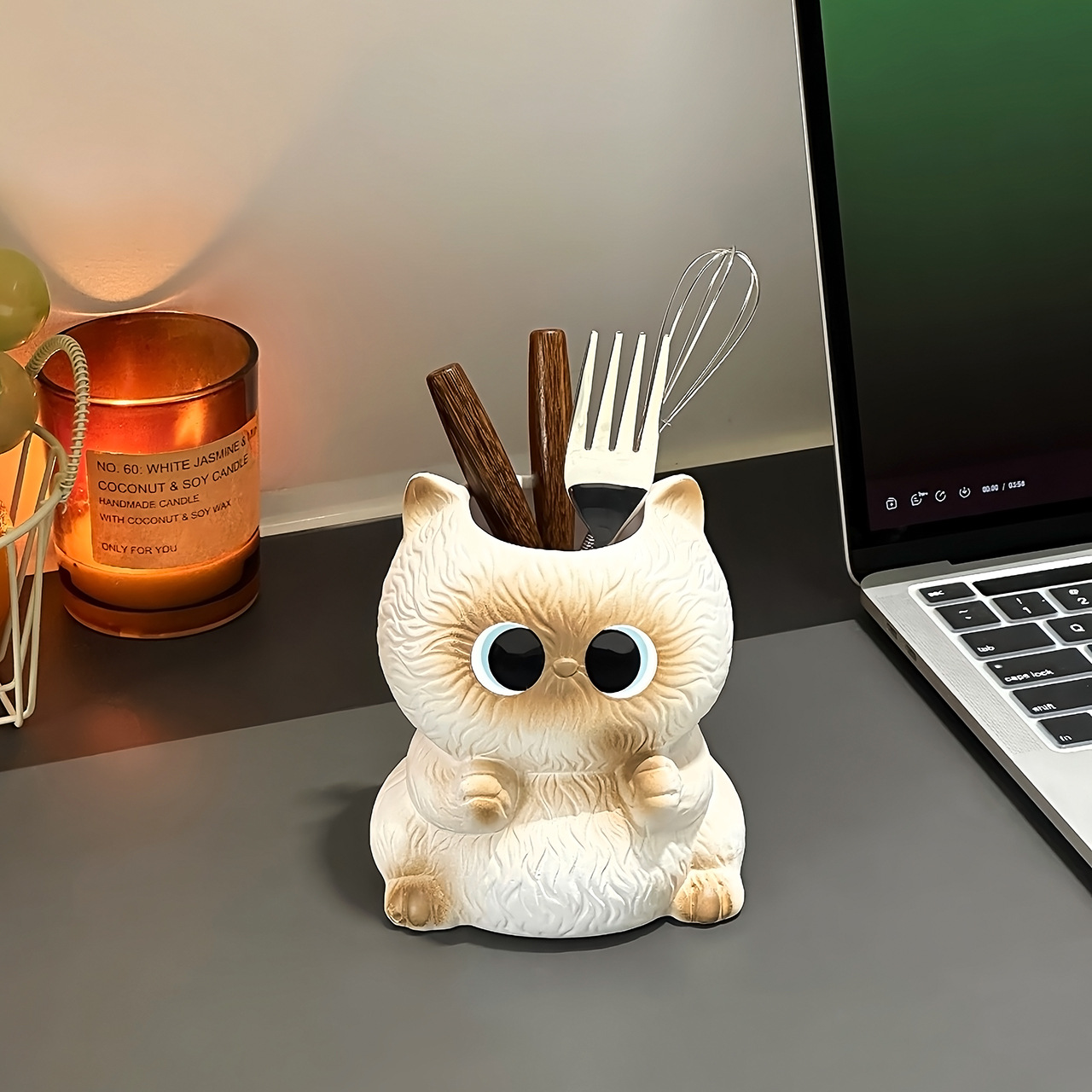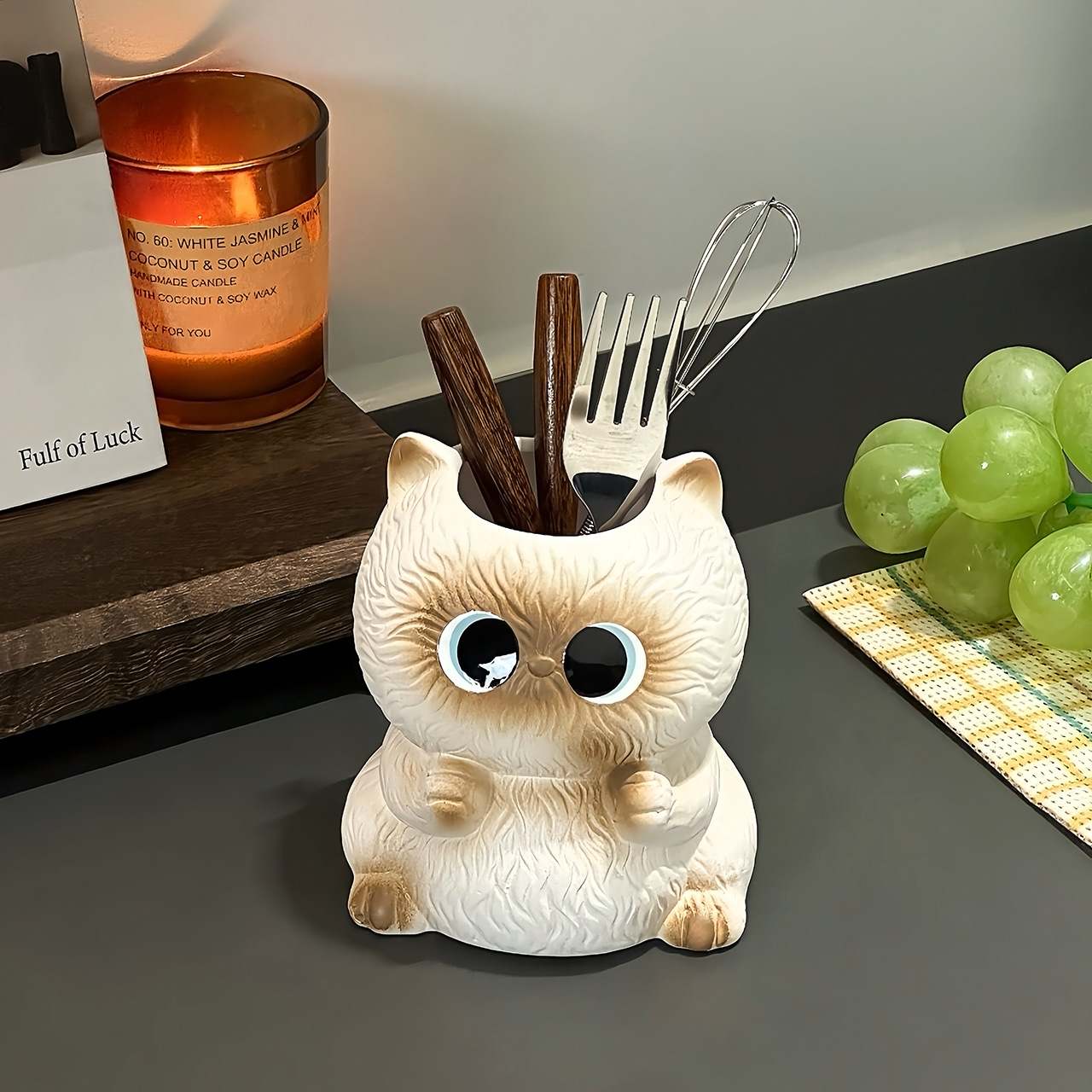Креативная и милая трубка для хранения кистей для макияжа сиамского кота, настольная коробка для хранения, держатель для ручек, керамический стол, дорогие украшения