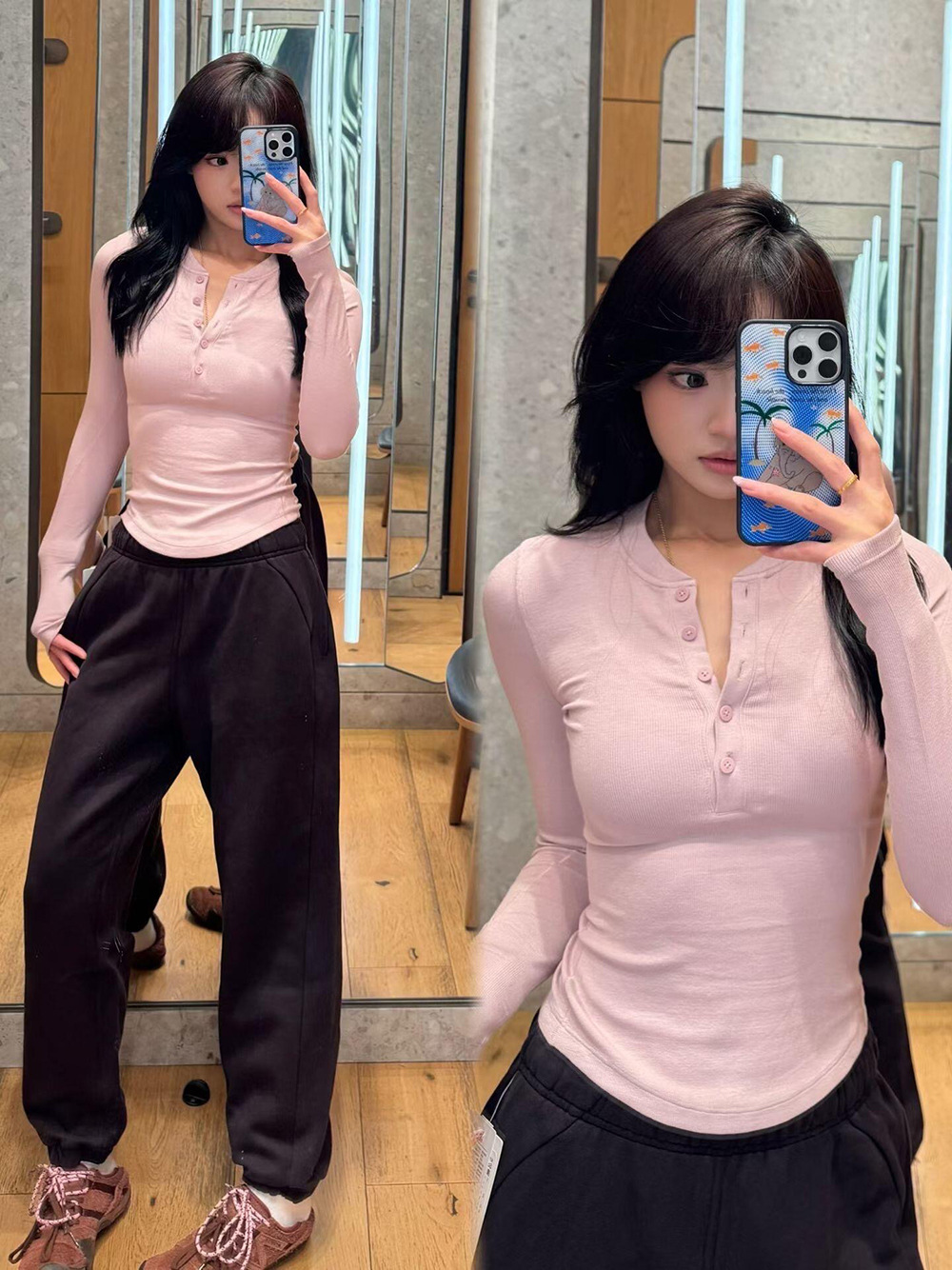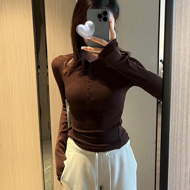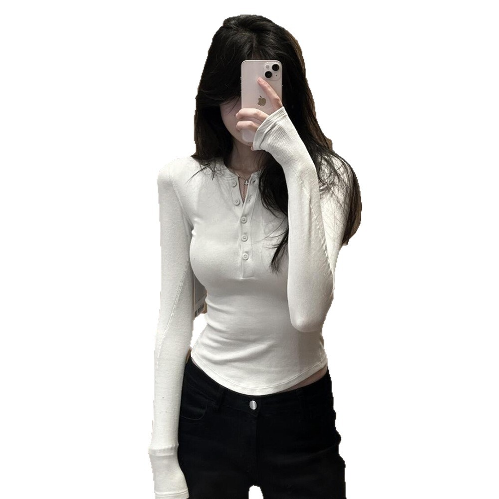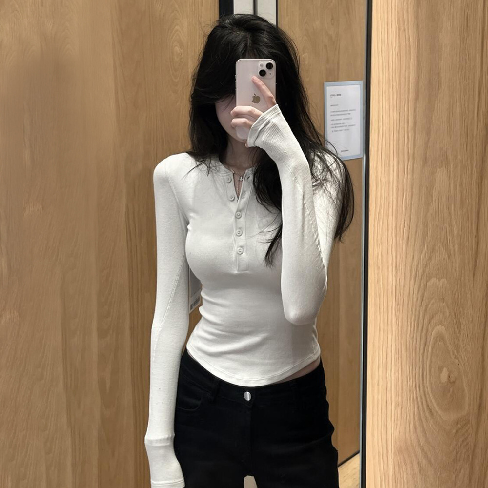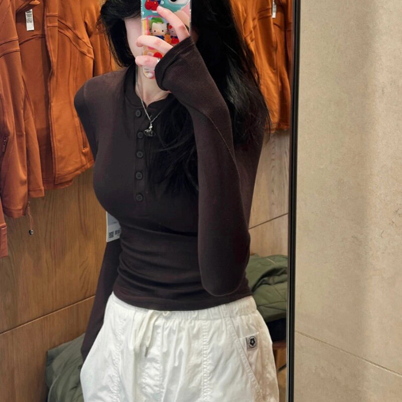 Главная страница > HoldTight25 Модальная облегающая футболка с длинными рукавами, трикотажная нижняя рубашка, рубашка в стиле Хенли для женщин, в японском и корейском стиле