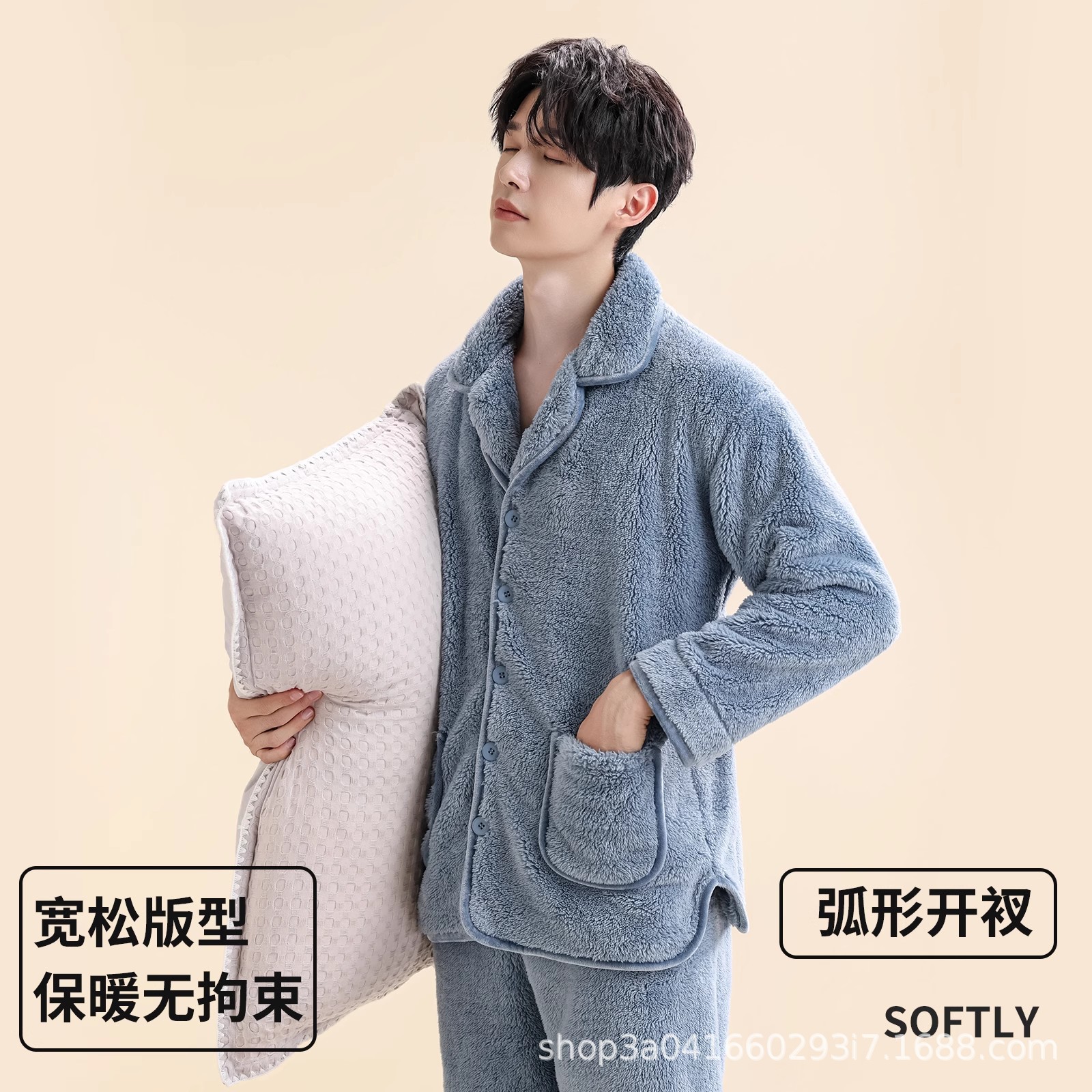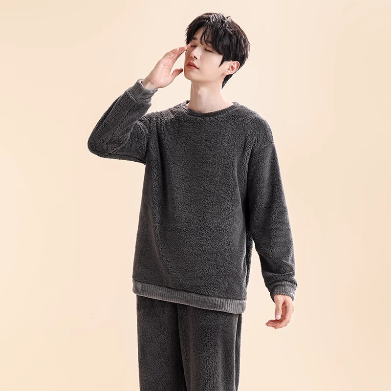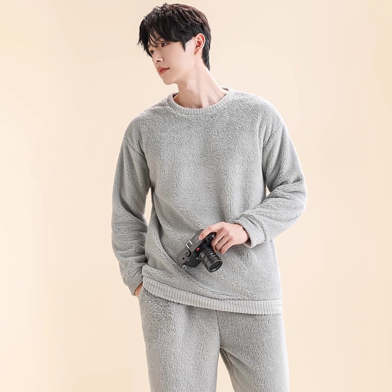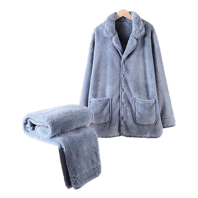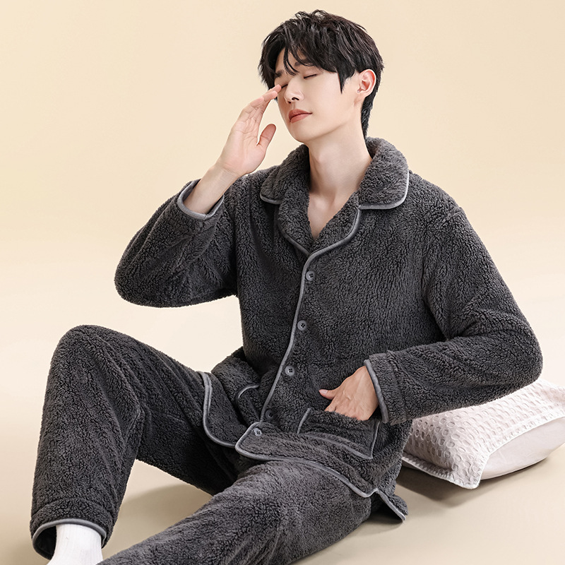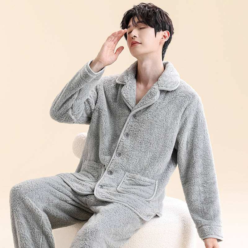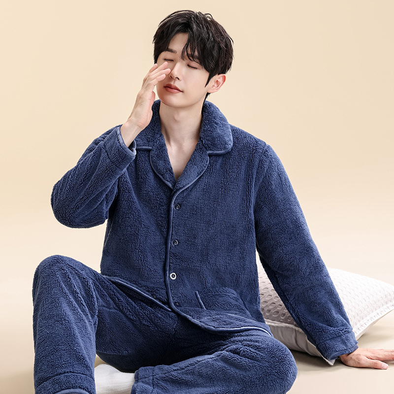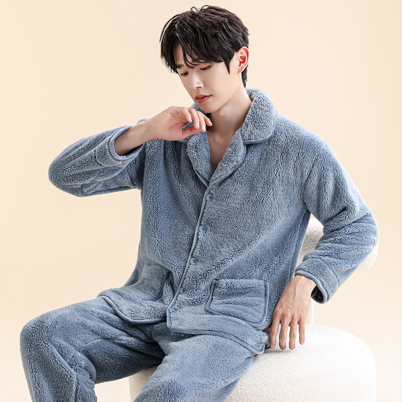 Главная страница > Мужские пижамы из кораллового бархата, мужская домашняя одежда, бархатный утолщенный кардиган на пуговицах, теплый фланелевой костюм, можно носить на улице.