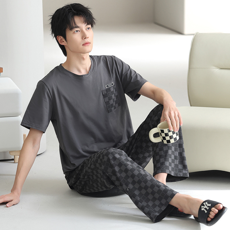Главная страница > Модаль Пижама для мужчин Летние брюки с коротким рукавом 2025 новый летний минималистский домашний костюм набор летних моделей